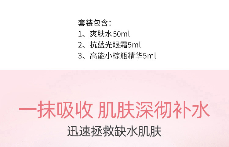 商品名称:Estee Lauder/雅诗兰黛 旅行小样套装 粉水50ml+抗蓝光眼霜5ml+高能小棕瓶精华5ml