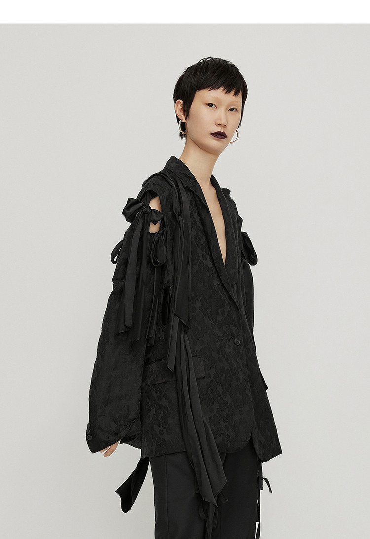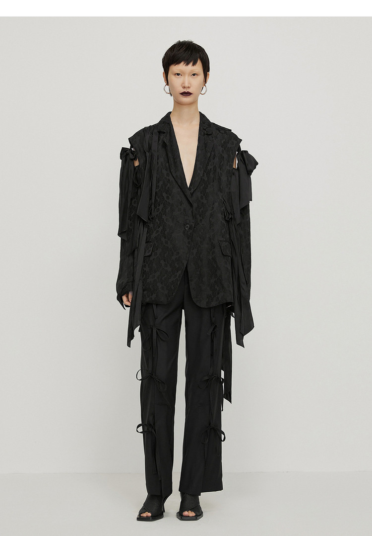商品名称:春秋西服飘带H型宽松外套女 766283