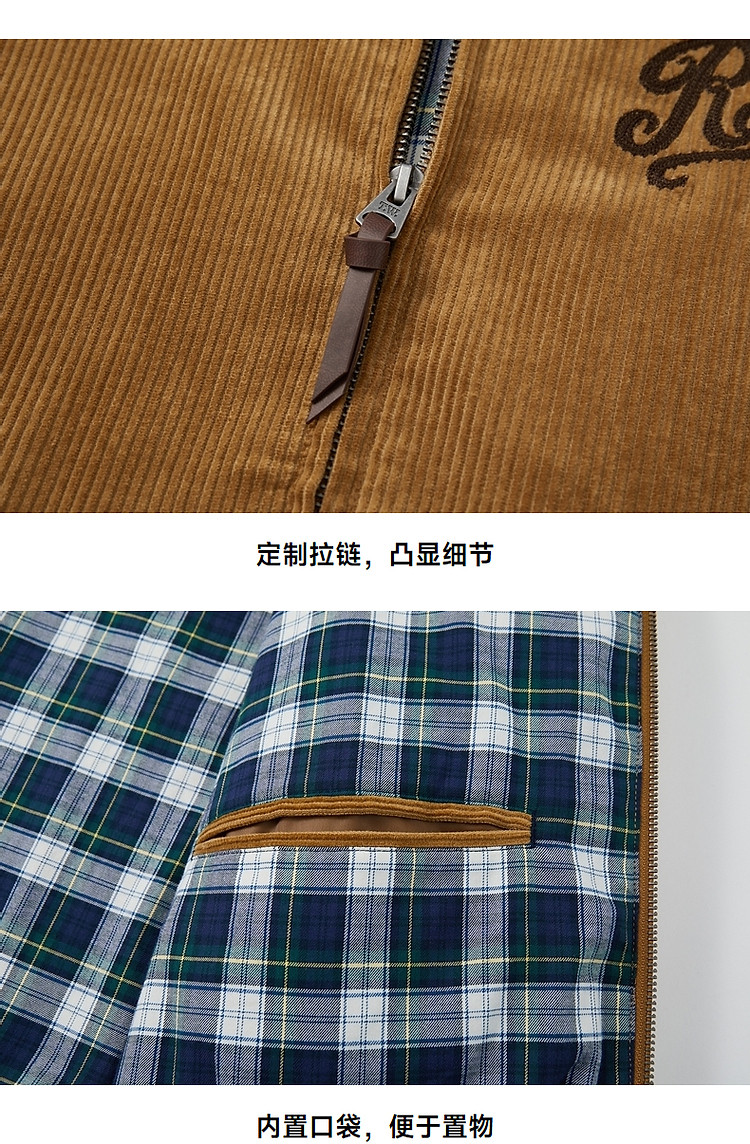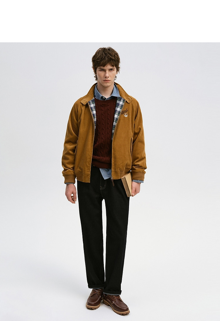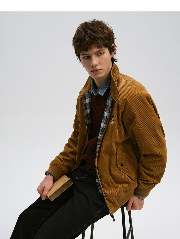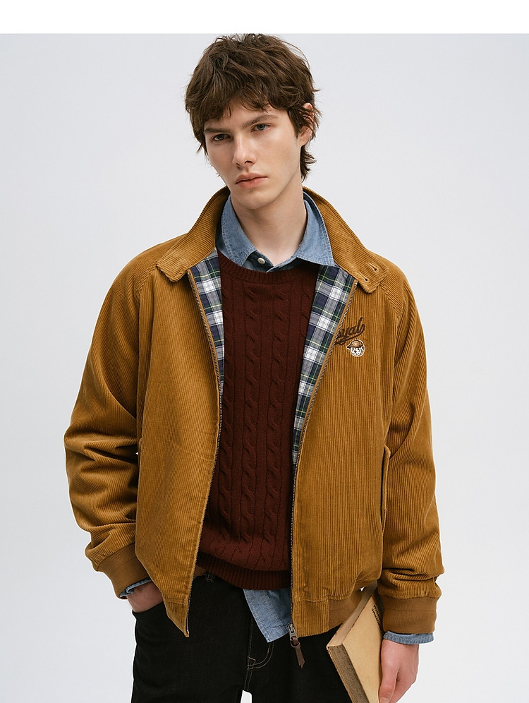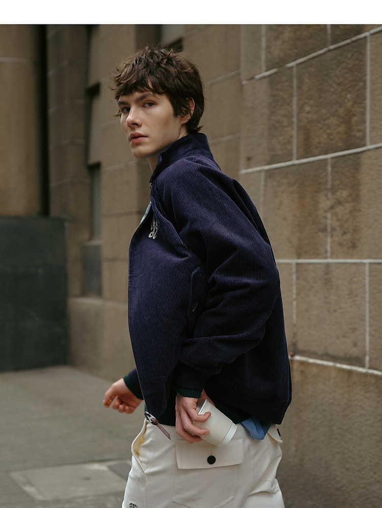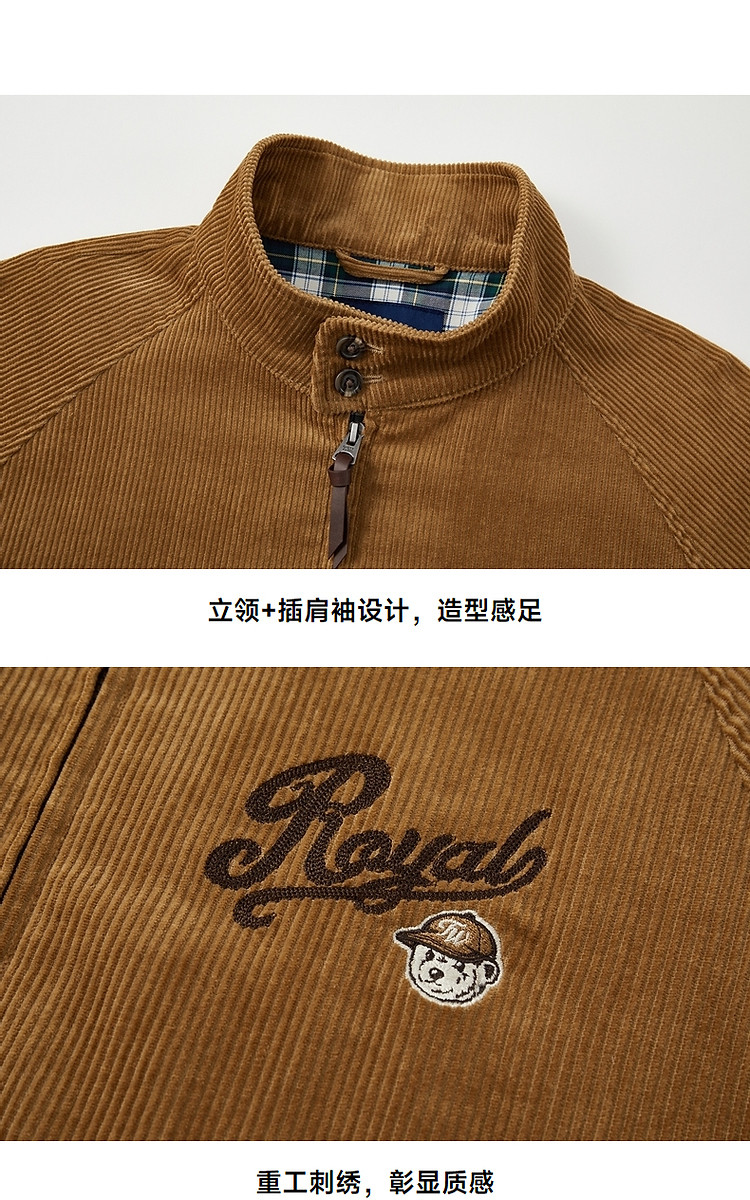 商品名称:小熊男装简约舒适时尚潮流外套冬灯芯绒休闲风宽松立领夹克男 374977