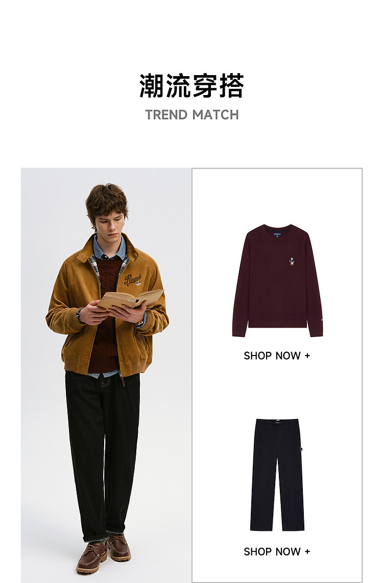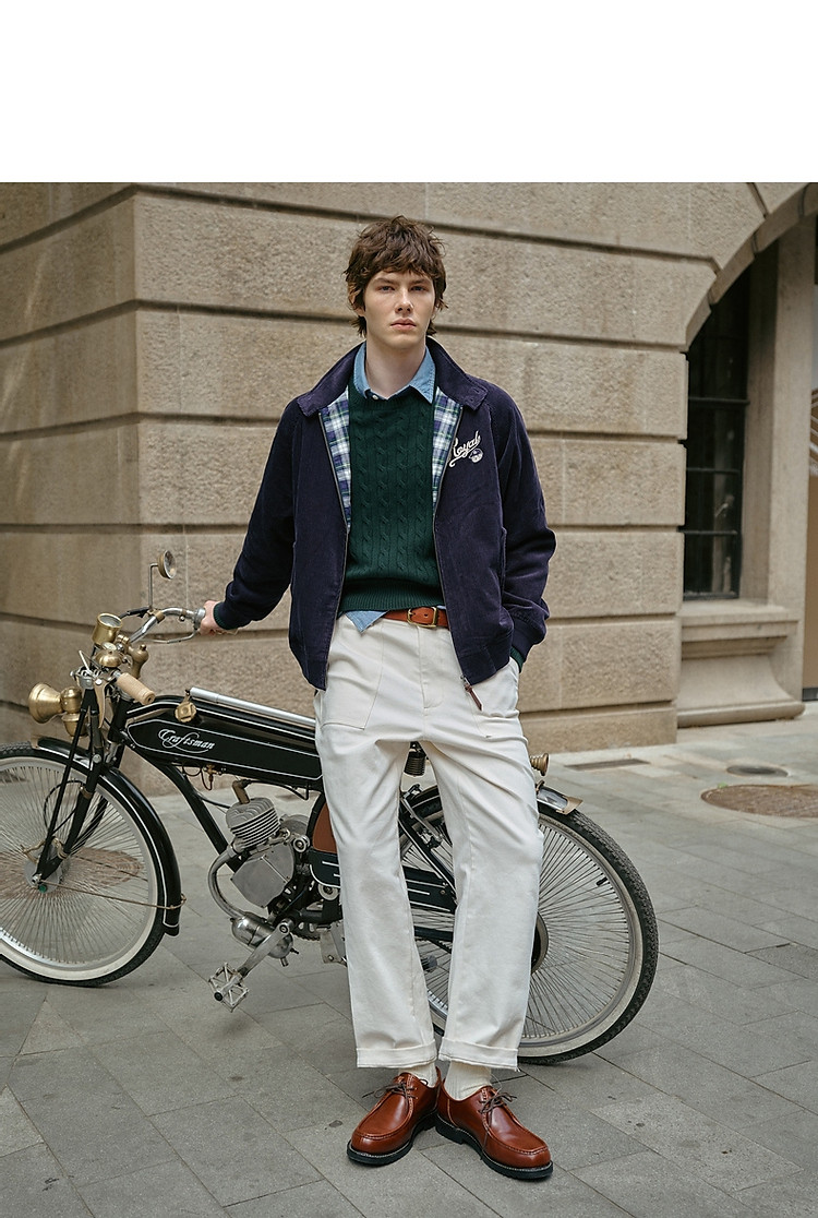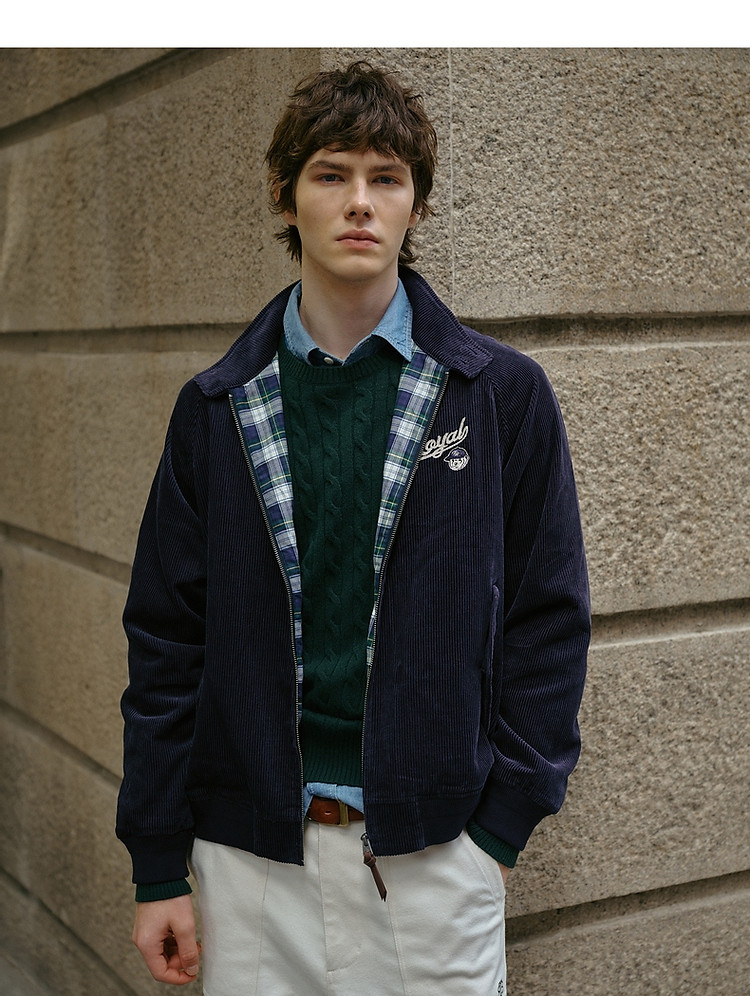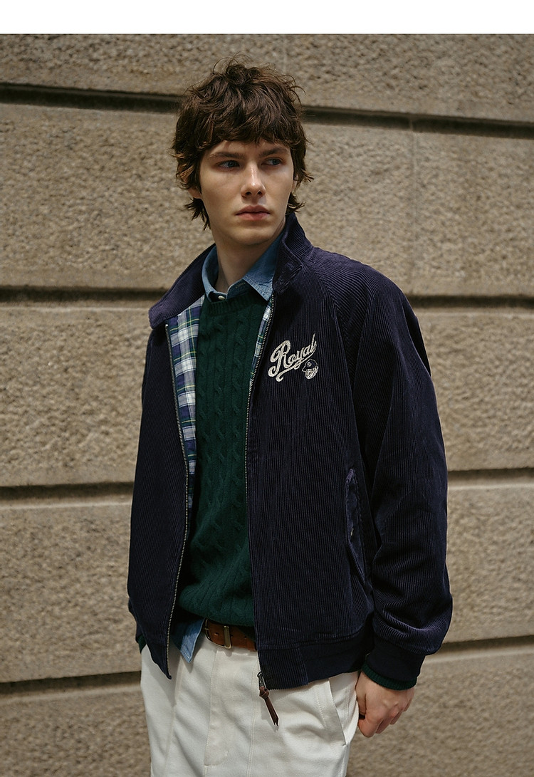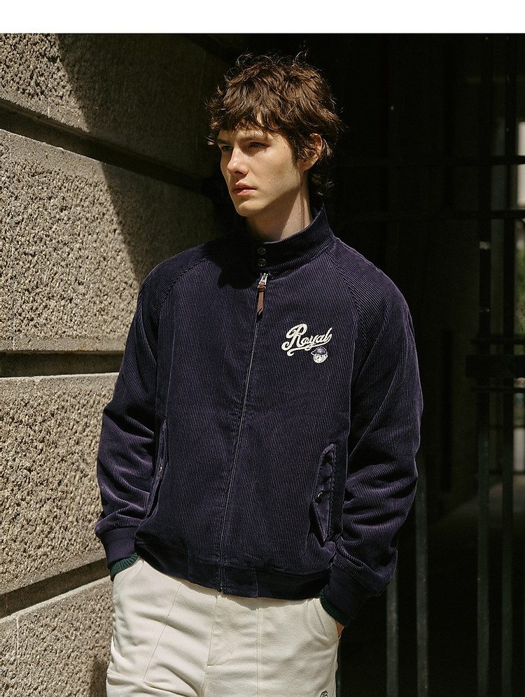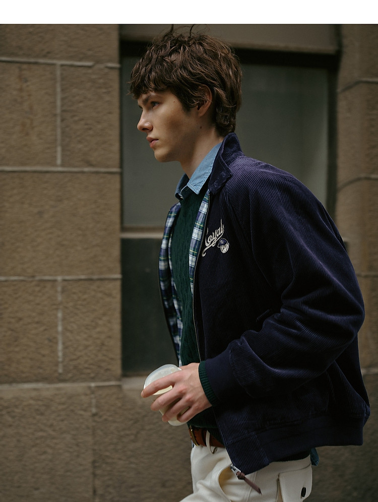 商品名称:小熊男装简约舒适时尚潮流外套冬灯芯绒休闲风宽松立领夹克男 374977