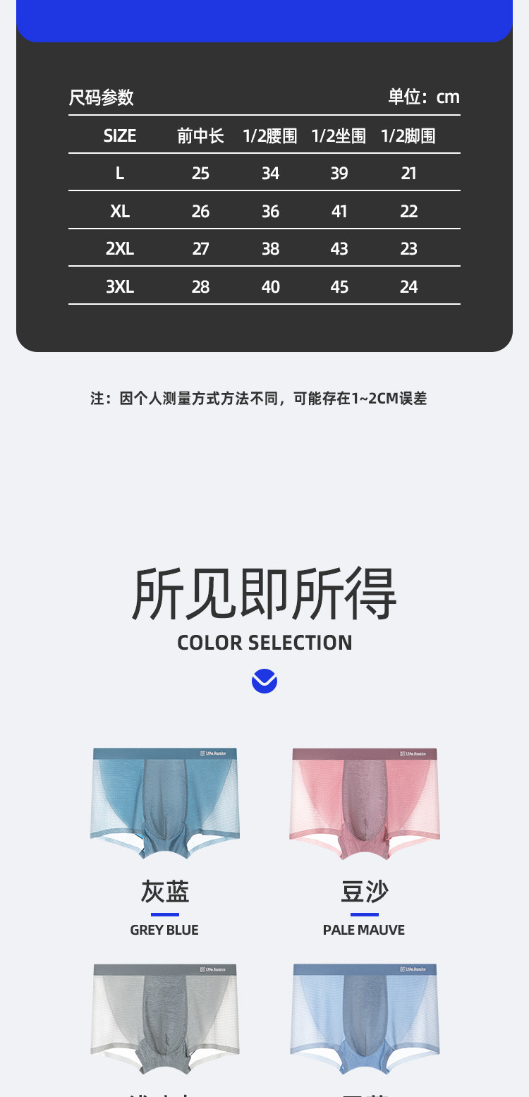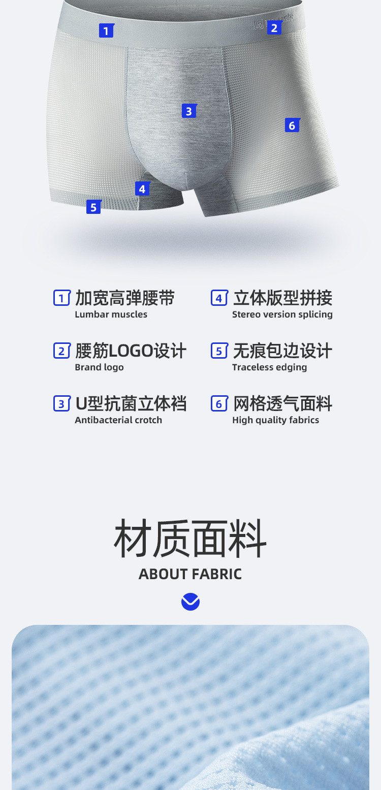 商品名称:捡漏【超薄无痕】3条装男士冰丝内裤男透气抑菌平角运动男士内裤 866778
