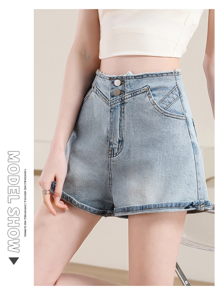 商品名称:【腿精的诞生】夏季休闲时尚百搭牛仔短裤中腰毛边裤子女 863832