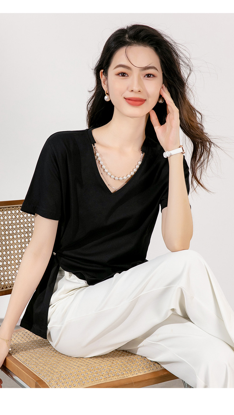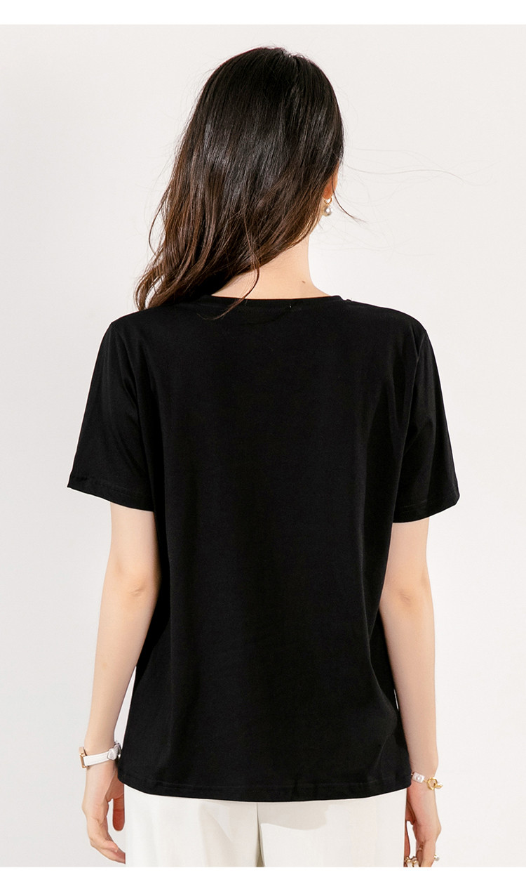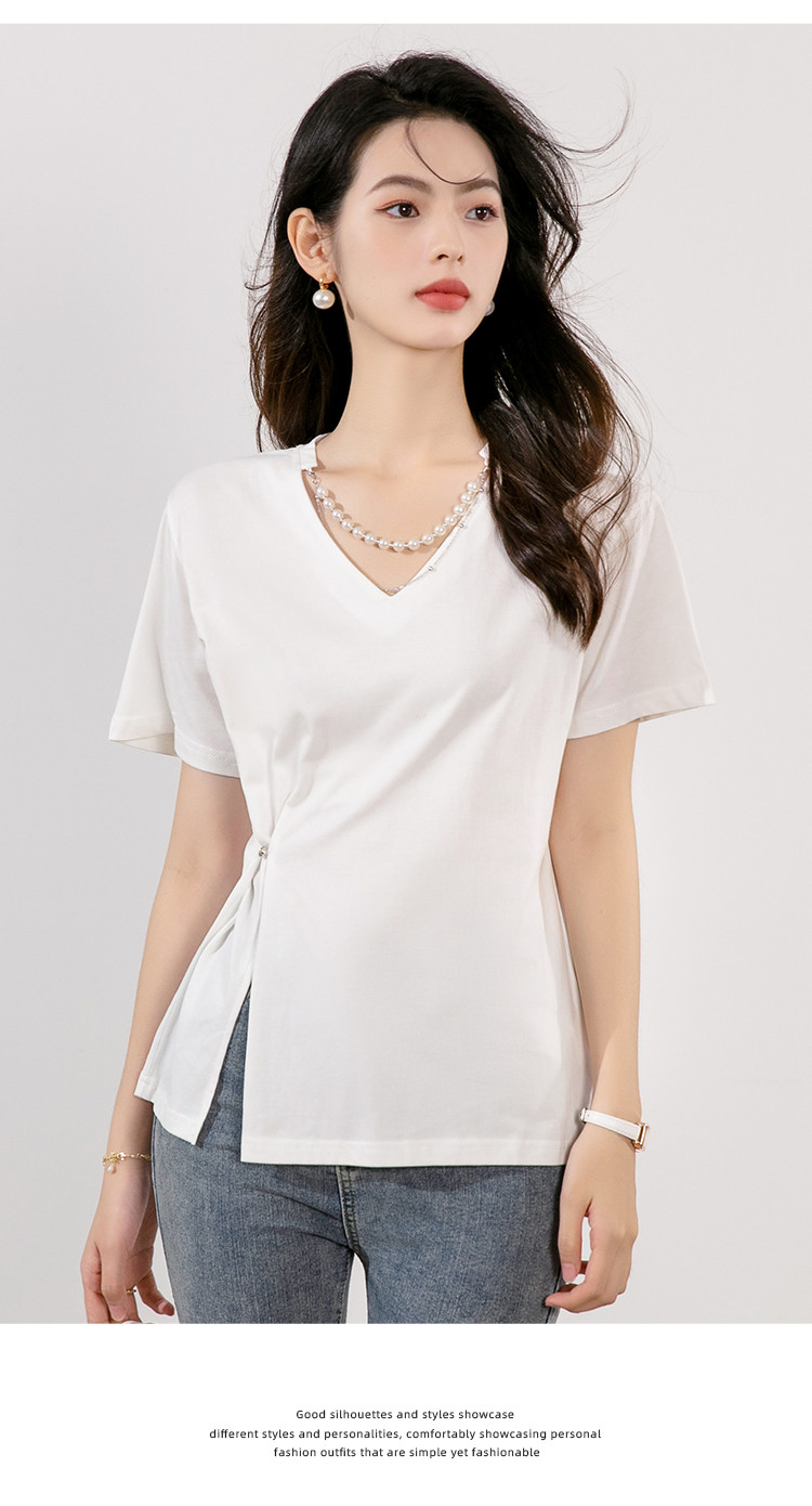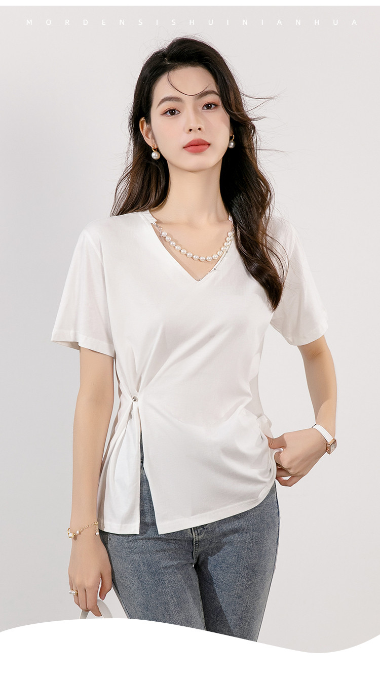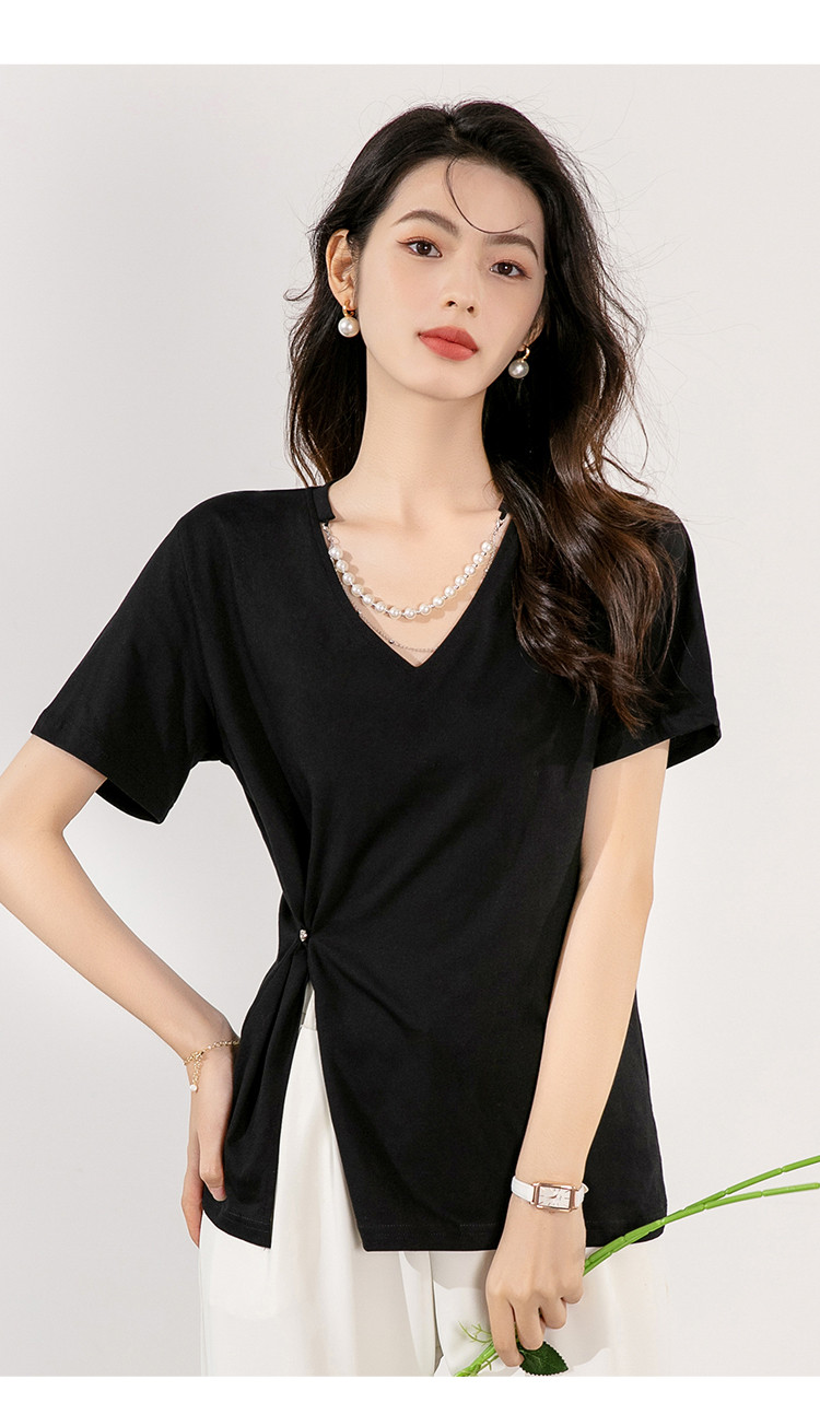 商品名称:夏季时尚扭结设计V领纯色休闲舒适短袖T恤女上衣潮 802840
