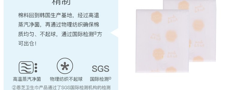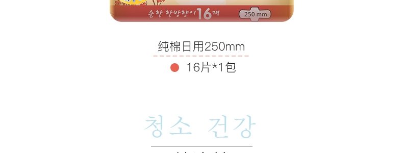 商品名称:韩国 恩芝 (Eun jee) 纯棉日用卫生巾(250mm/16P)
