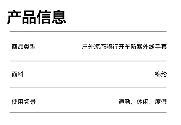 商品名称:25春夏户外运动露营凉感防晒手套触屏防紫外线防滑骑行半指手套 724429