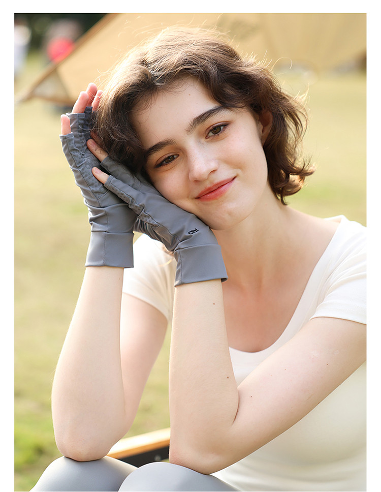 25春夏户外运动露营凉感防晒手套触屏防紫外线防滑骑行半指手套 724429