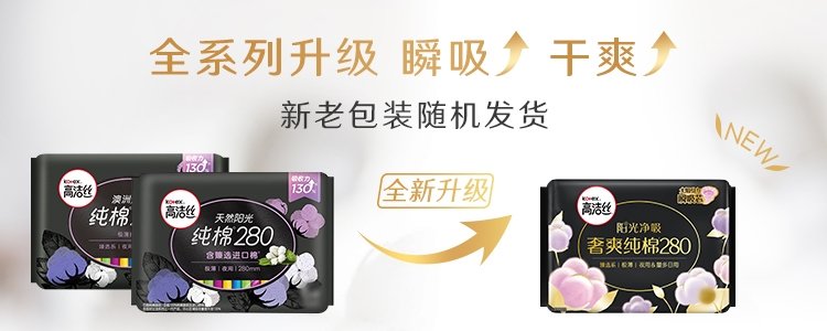商品名称:美国 高洁丝(kotex)臻选纯棉卫生巾夜用280 6片*4包