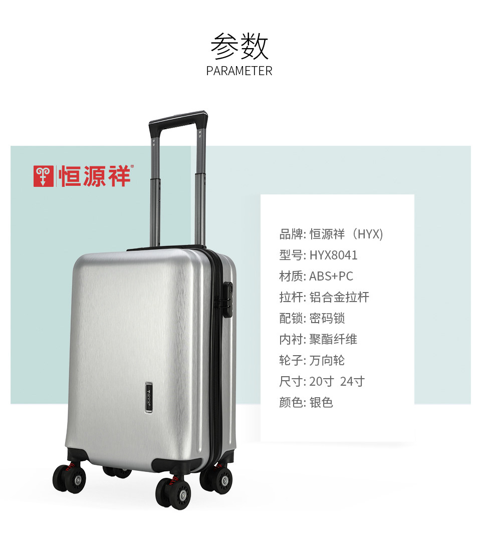 商品名称:恒源祥(HYX)永恒拉杆箱新款时尚轻便行李箱大容量拉链箱旅行登机密码箱HYX8041