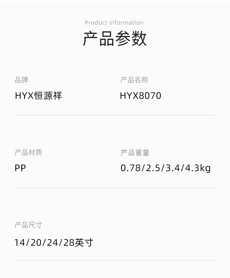 商品名称:恒源祥PP行李箱大容量28P行李箱24英寸拉杆箱旅行箱20英寸登机箱子男 HYX8070