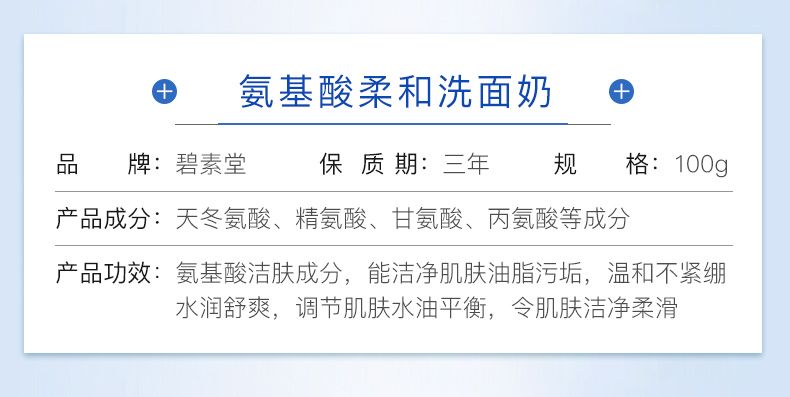 商品名称:碧素堂氨基酸柔和洗面奶100g 保湿清洁不紧绷