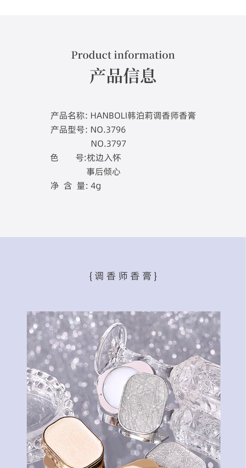 商品名称:HANBOLI韩泊莉固体香膏持久自然淡香留香随身便携固态香水香体膏