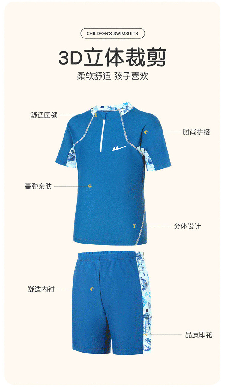 商品名称:儿童泳衣男童中大童分体泳装宝宝男孩冲浪服休闲度假游泳衣泡温泉 251539