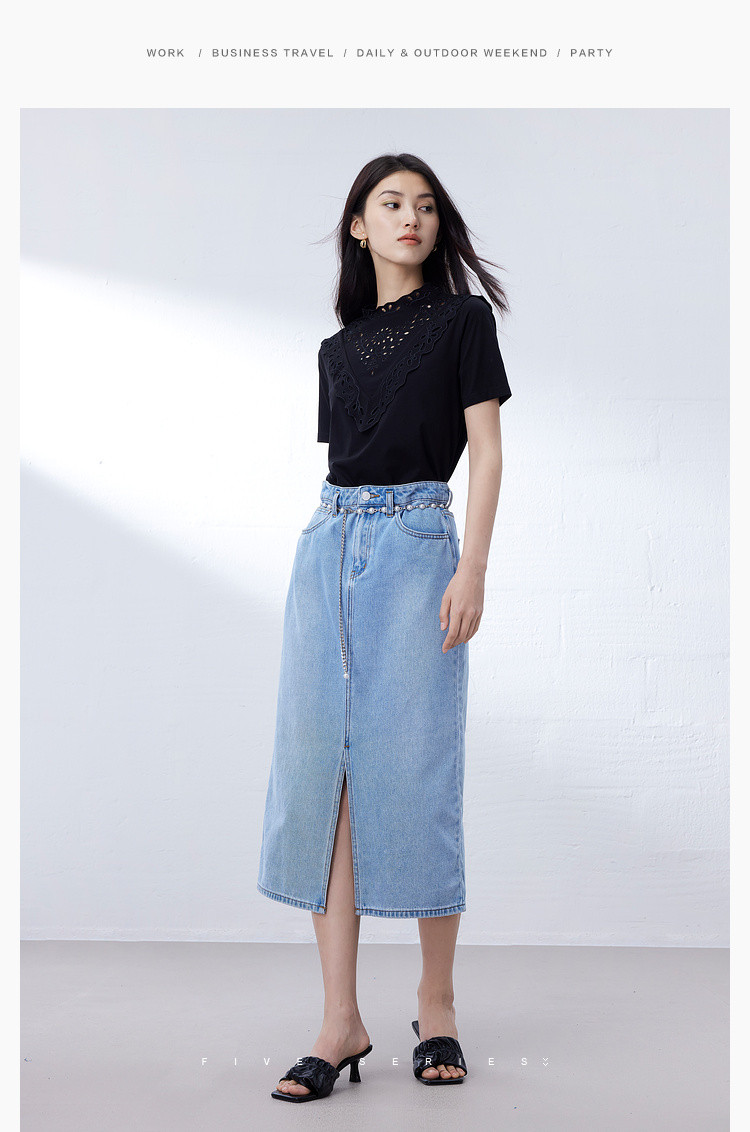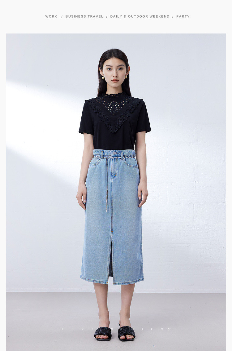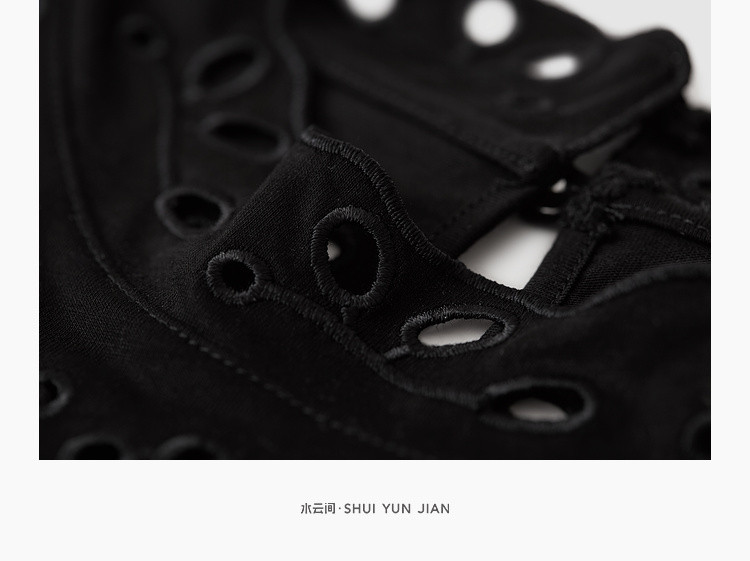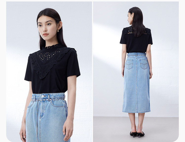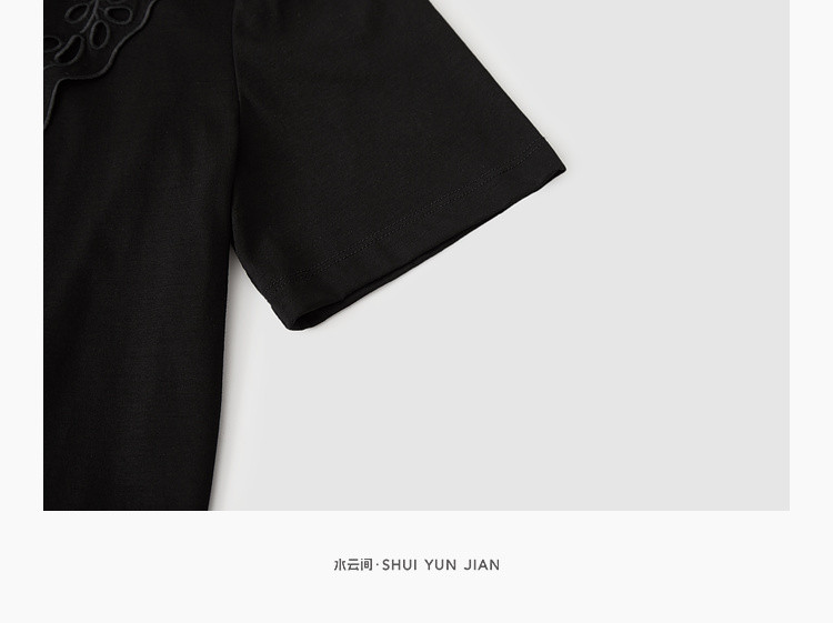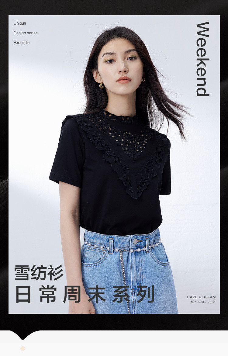 商品名称:气质蕾丝立领短袖T恤女夏季独特设计感百搭通勤镂空纯色衬衫女 432131