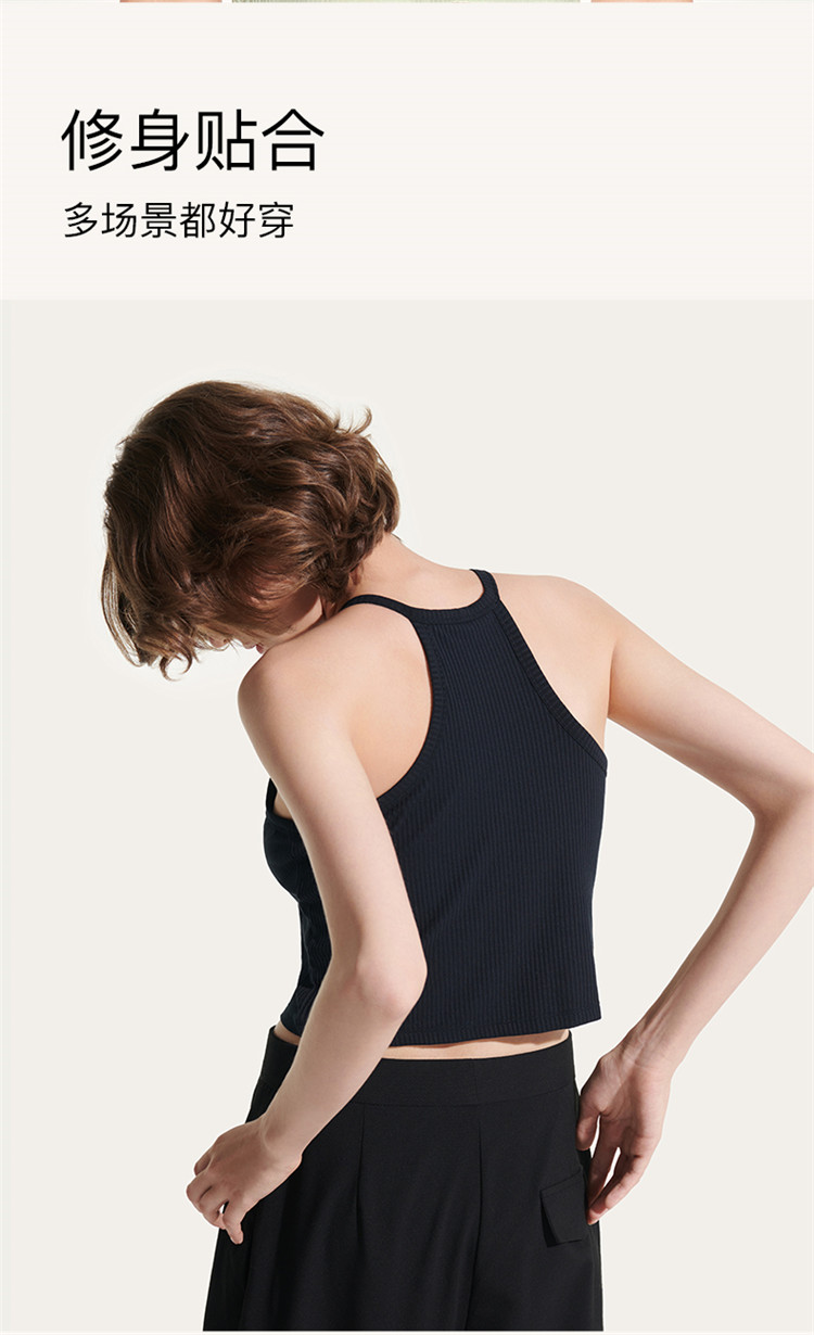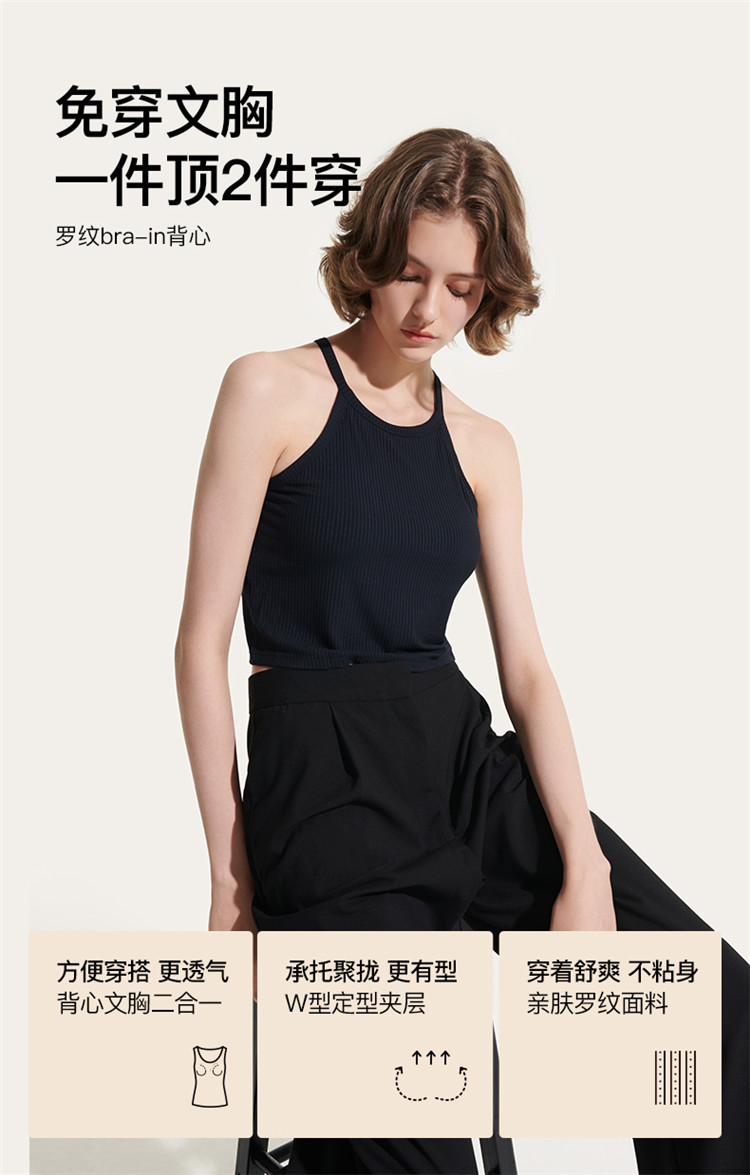 商品名称:【免穿文胸】罗纹自带胸垫圆领短款背心吊带文胸一体免穿内衣女士 304768