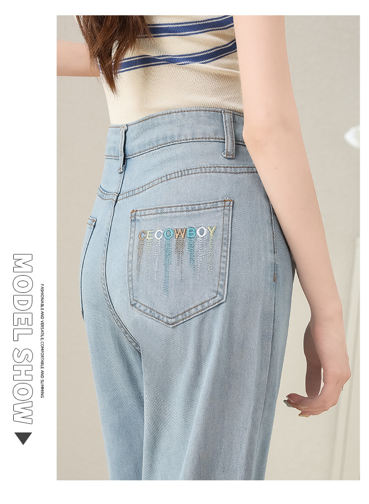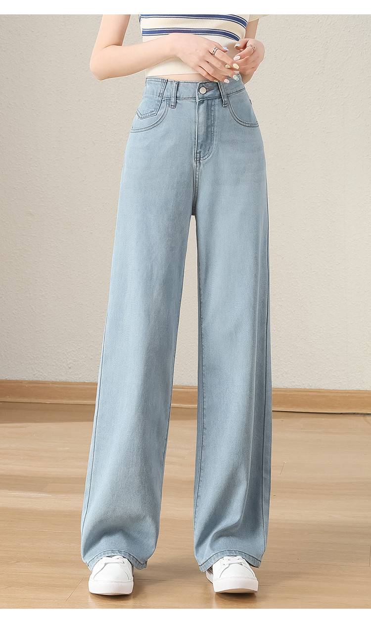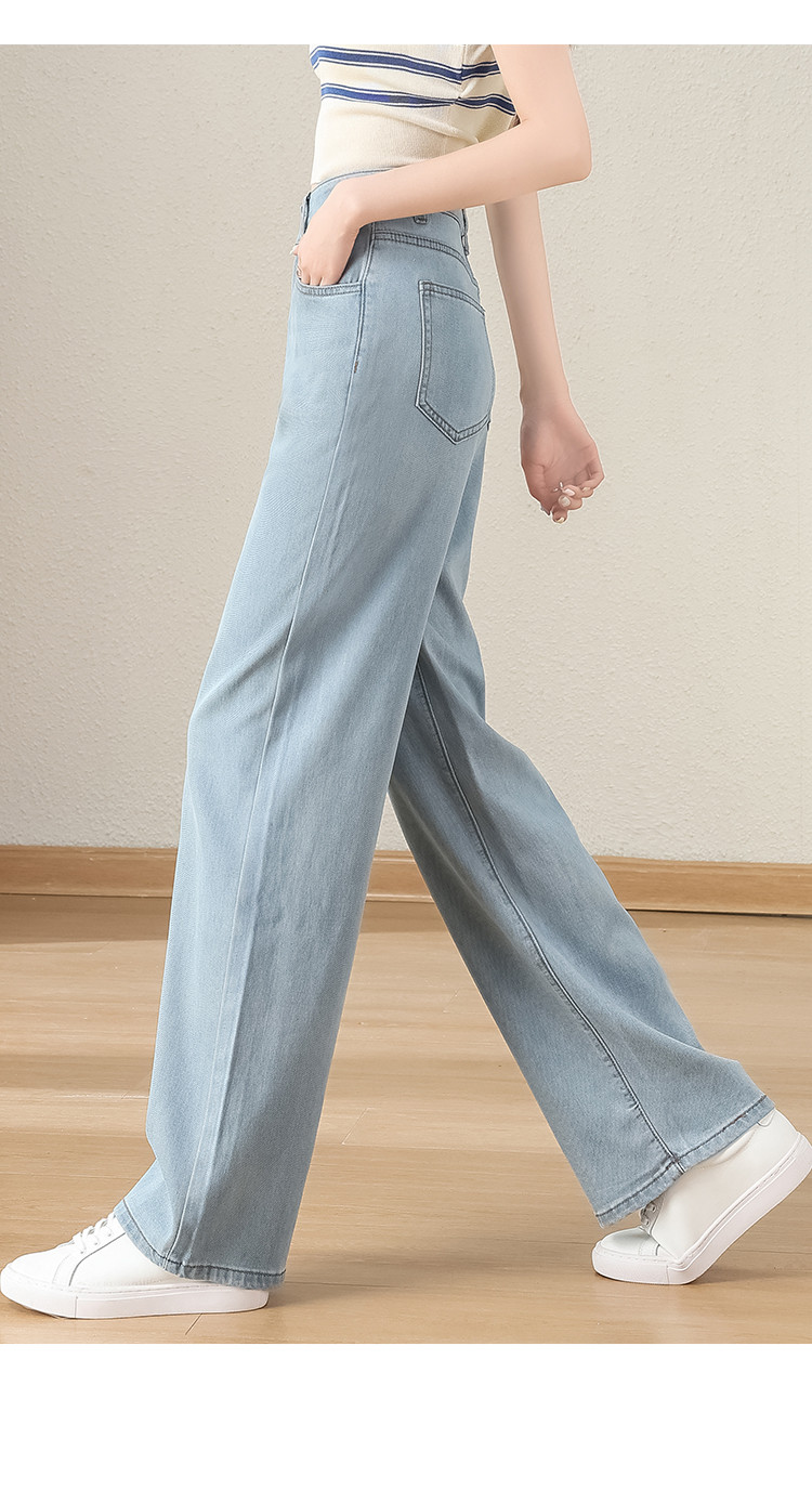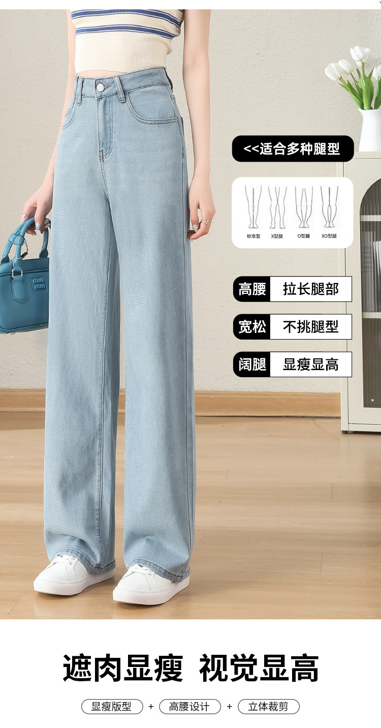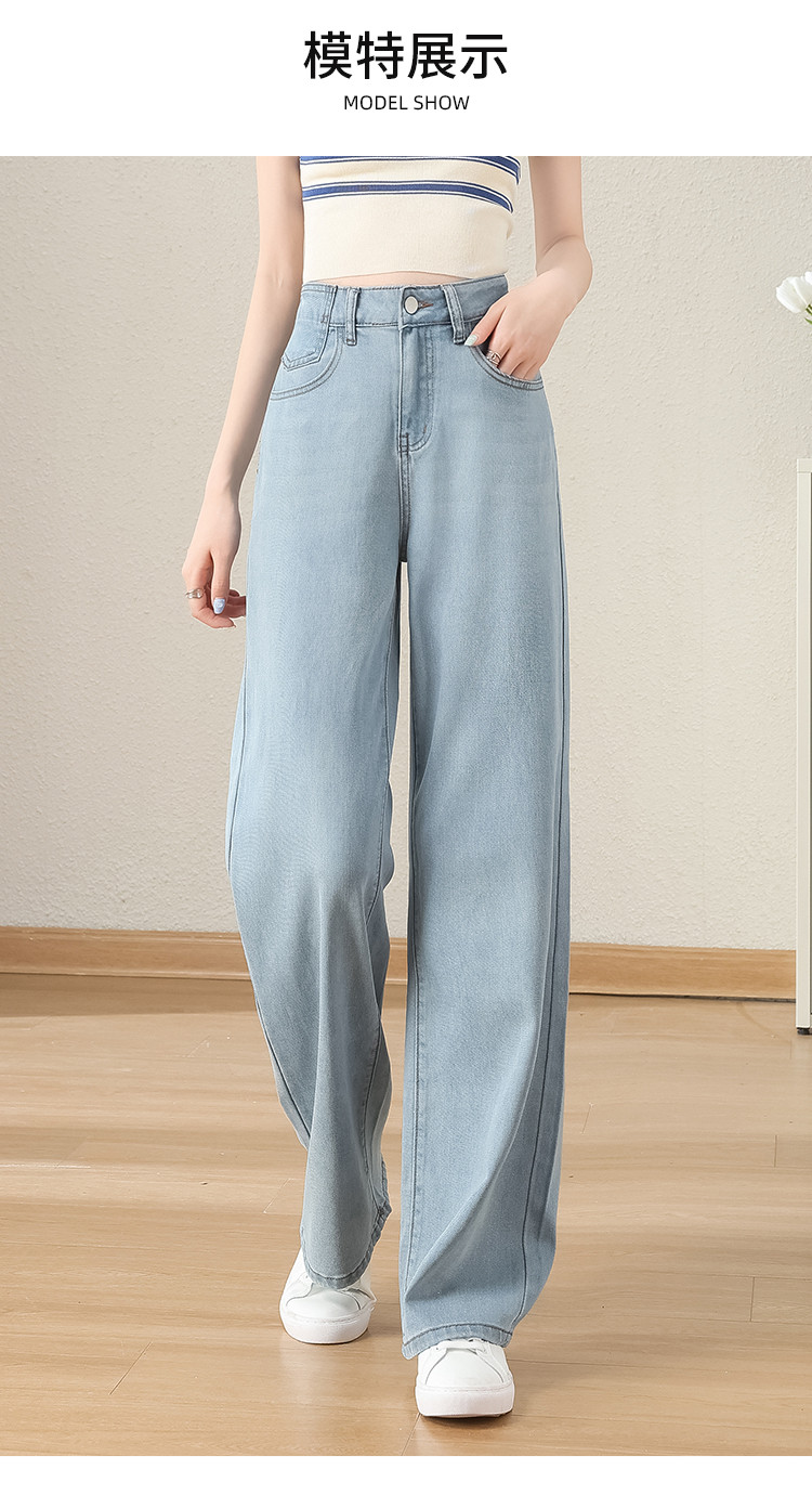 莱赛尔牛仔裤女夏季薄款高腰垂感直筒宽松显瘦小个子窄版阔腿裤 016664