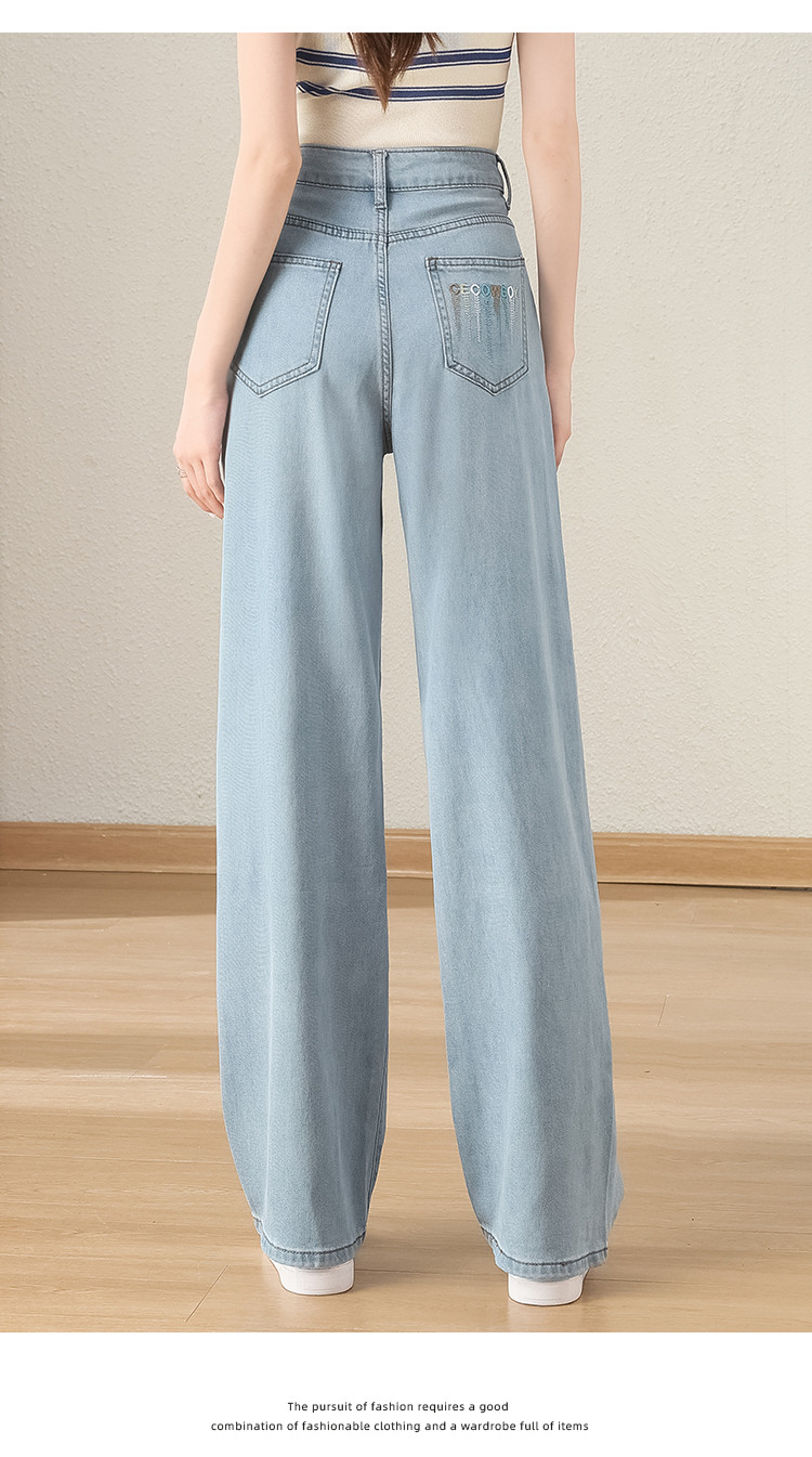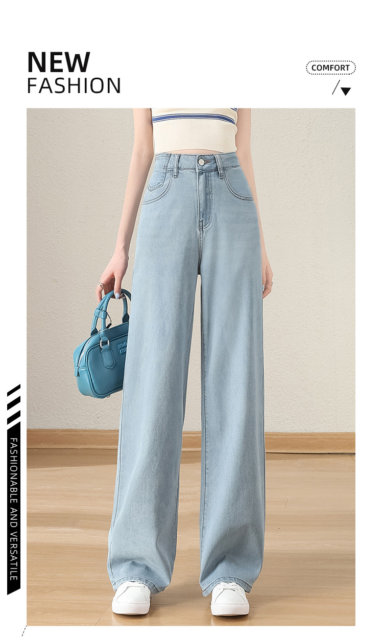商品名称:莱赛尔牛仔裤女夏季薄款高腰垂感直筒宽松显瘦小个子窄版阔腿裤 016664