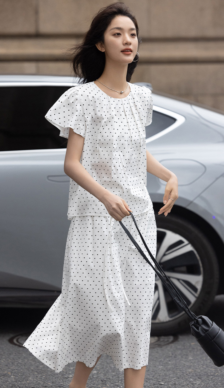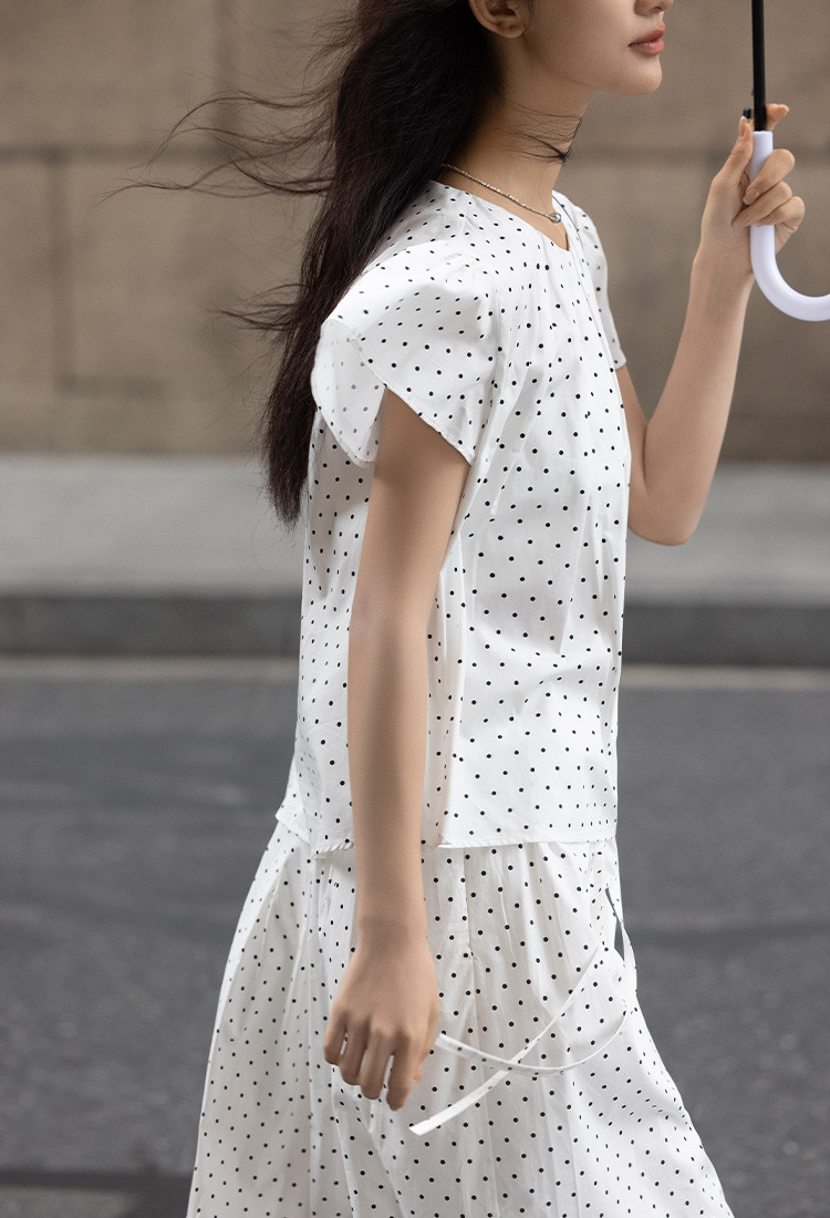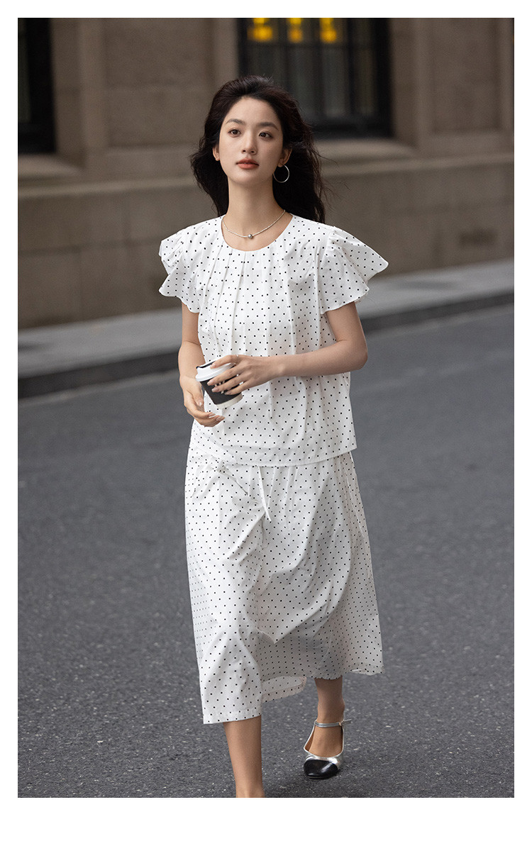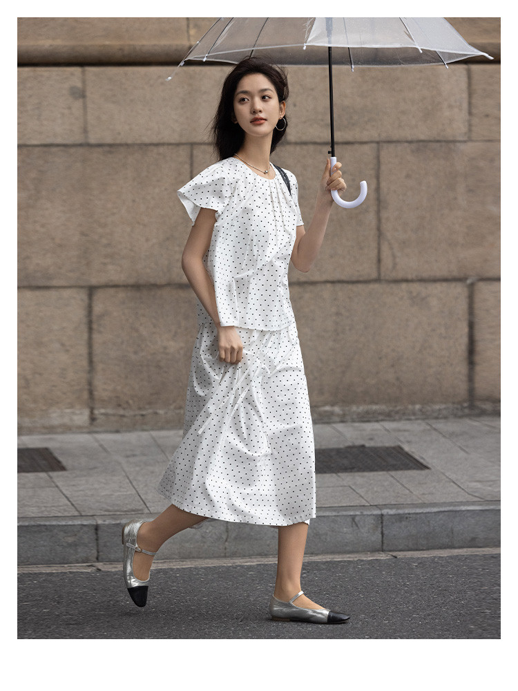 商品名称:【俏皮小飞袖波点上衣】夏款复古波点清爽感衬衫女 739010