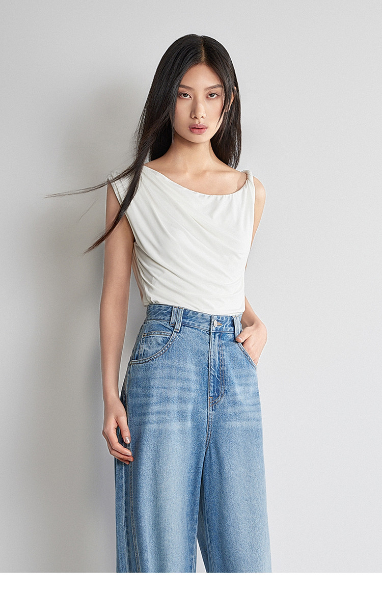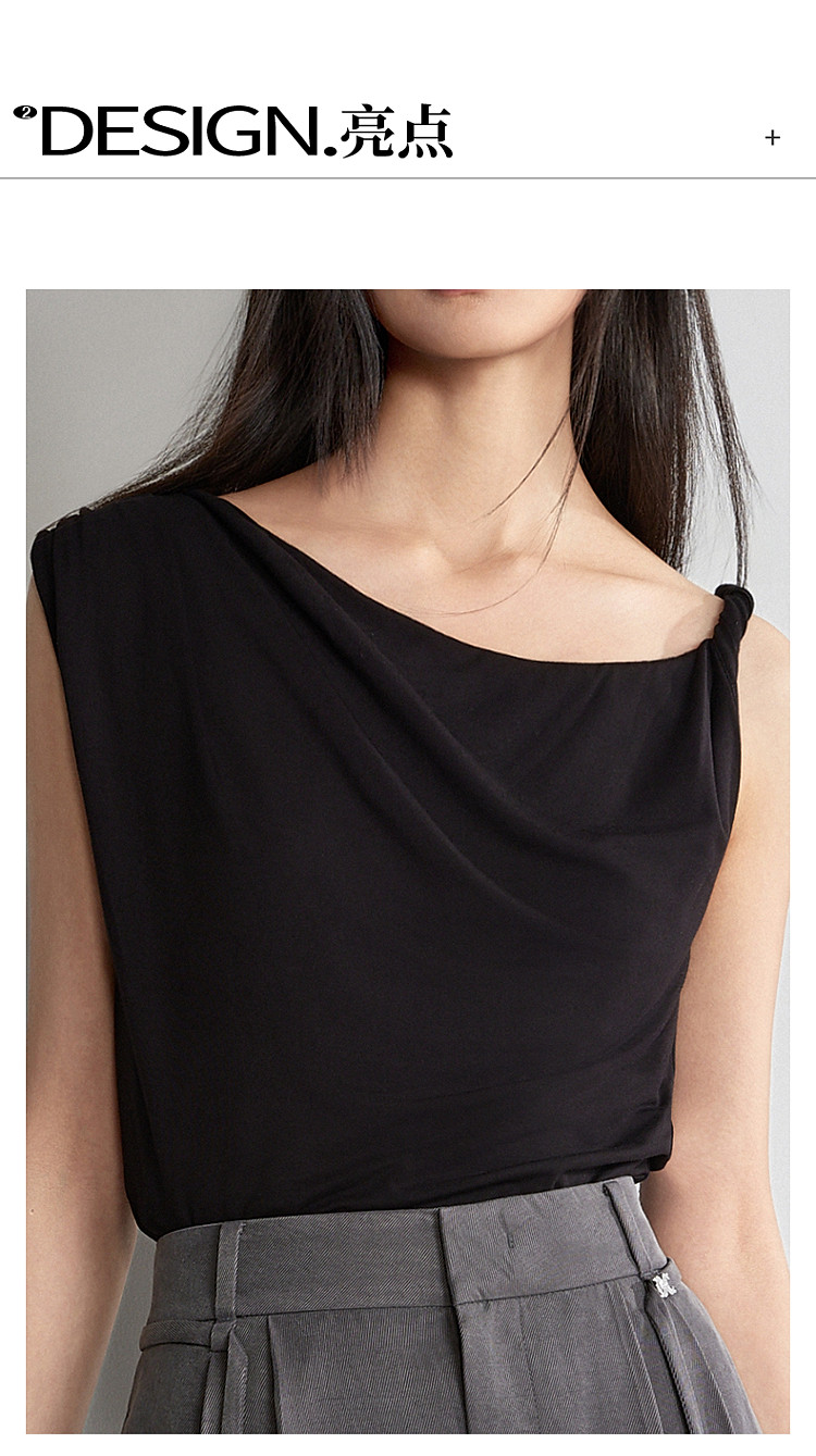 商品名称:夏装 不对称无袖t恤女上衣透气别致设计感 637519