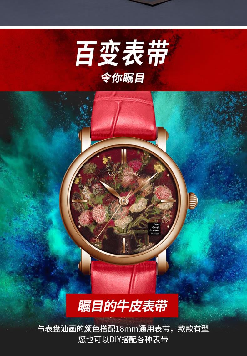 梵高(VanGogh)瑞士女士石英手表-紫苑和夹竹桃