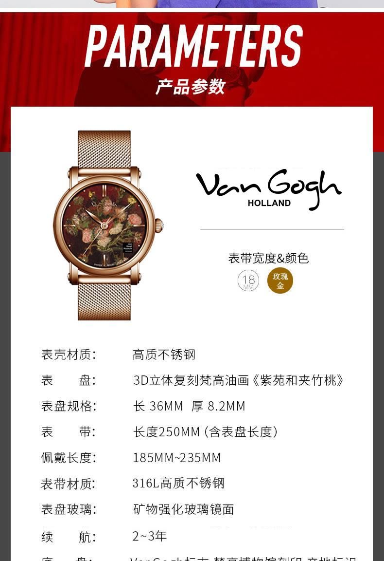 商品名称:梵高(VanGogh)瑞士女士石英手表-紫苑和夹竹桃