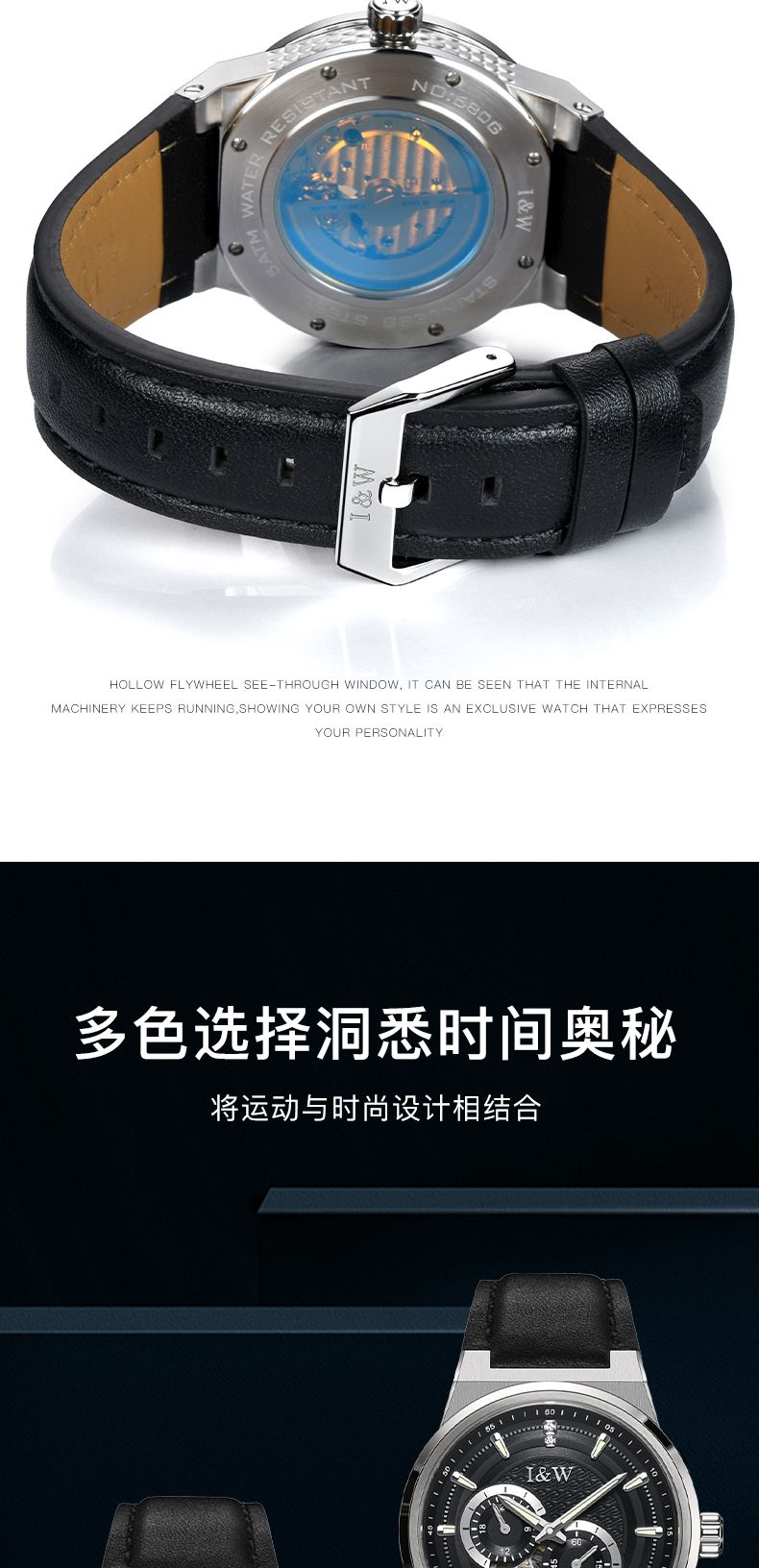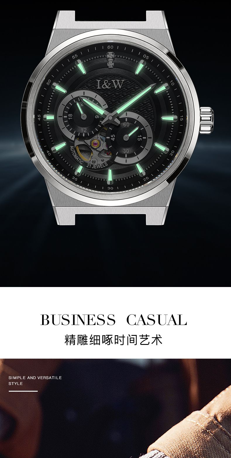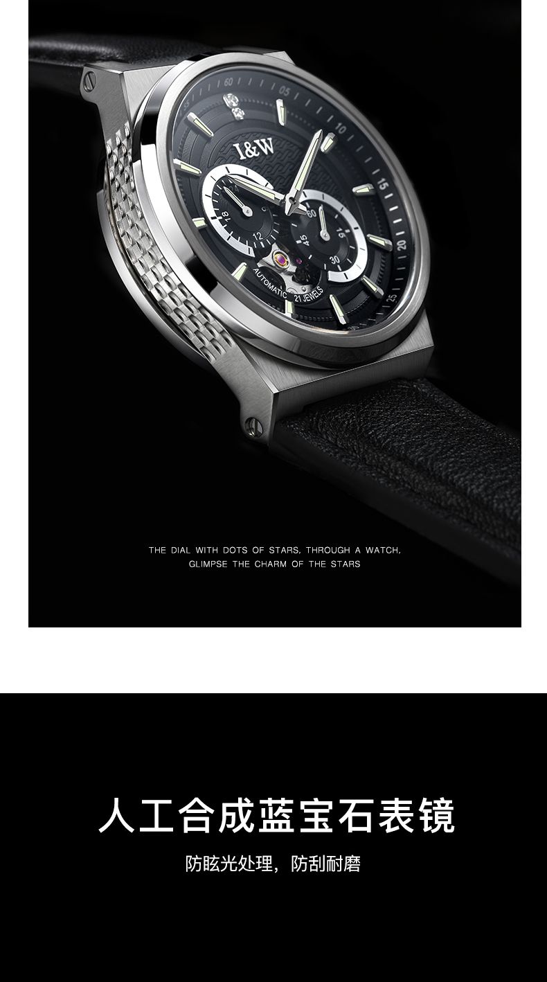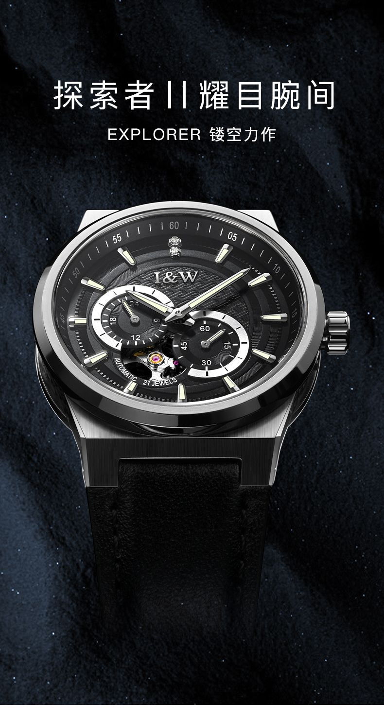 商品名称:瑞士I&W爱沃驰男士机械表探索者系列真皮腕表
