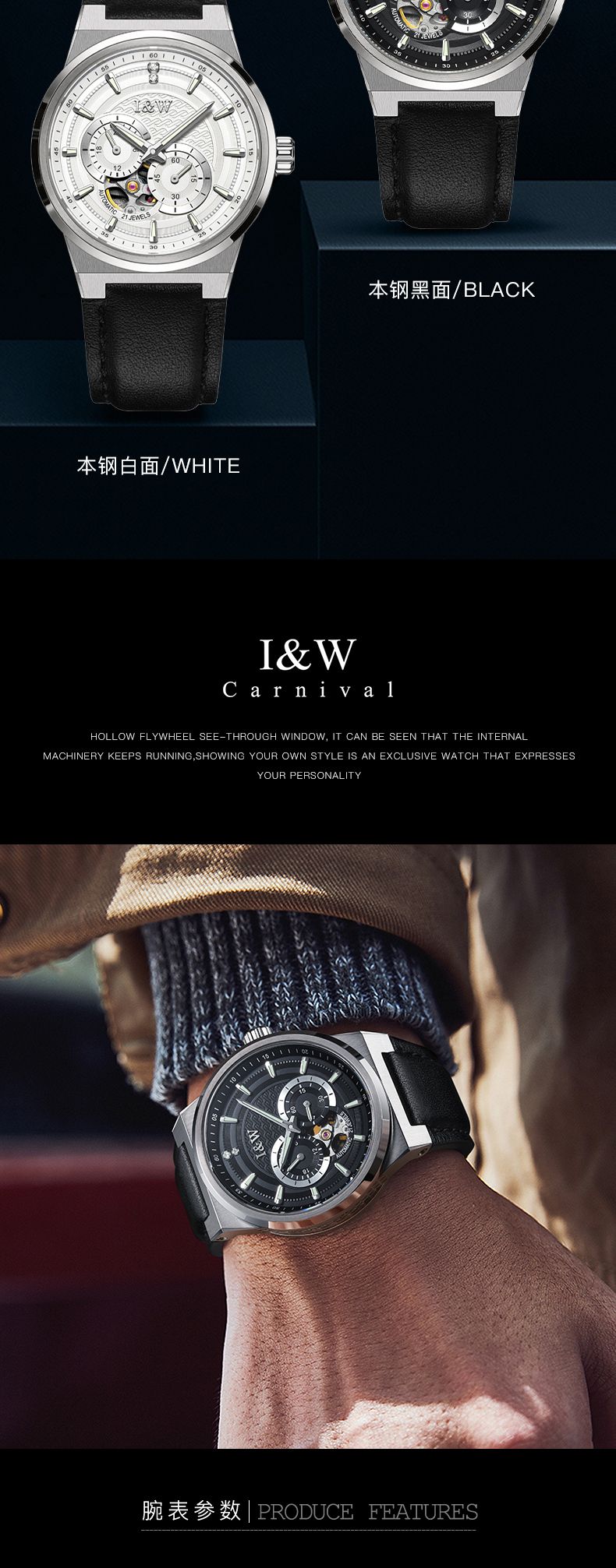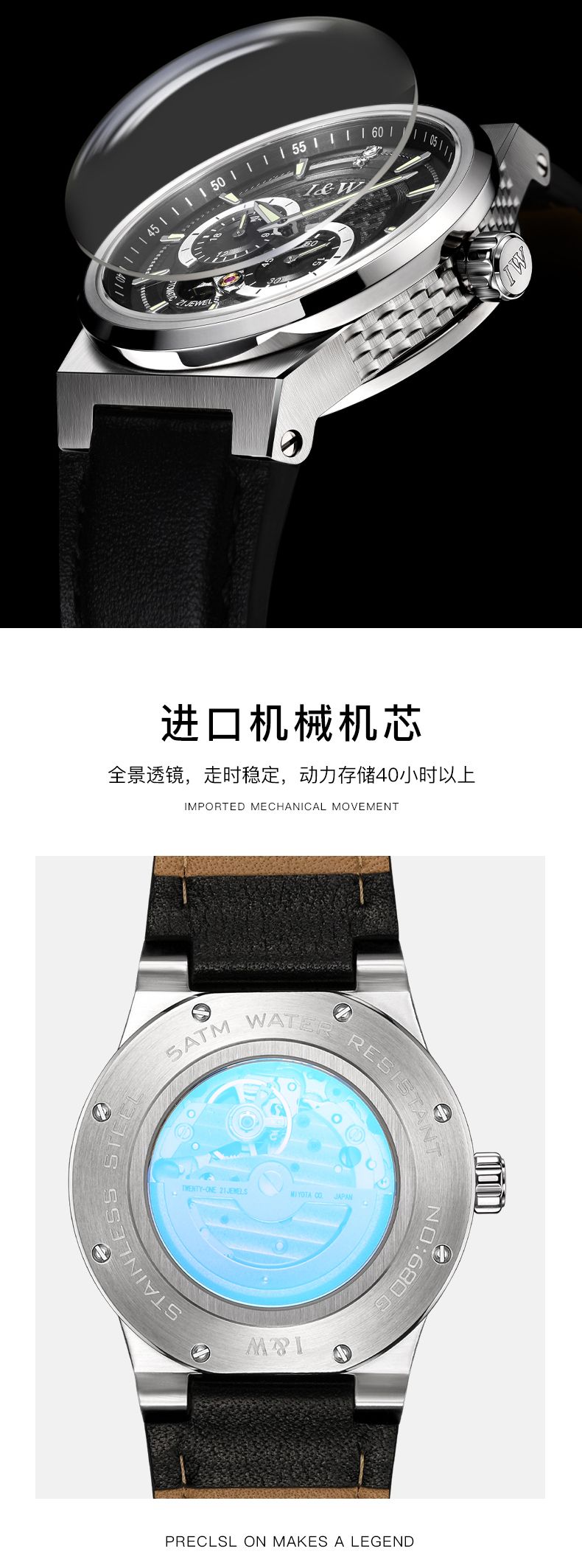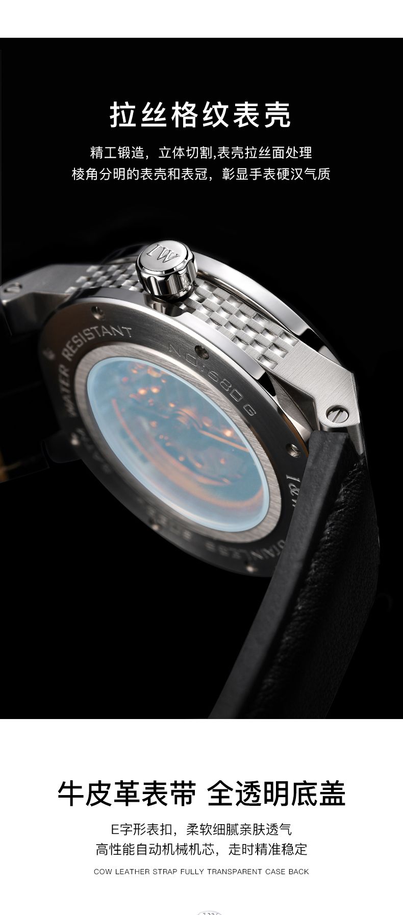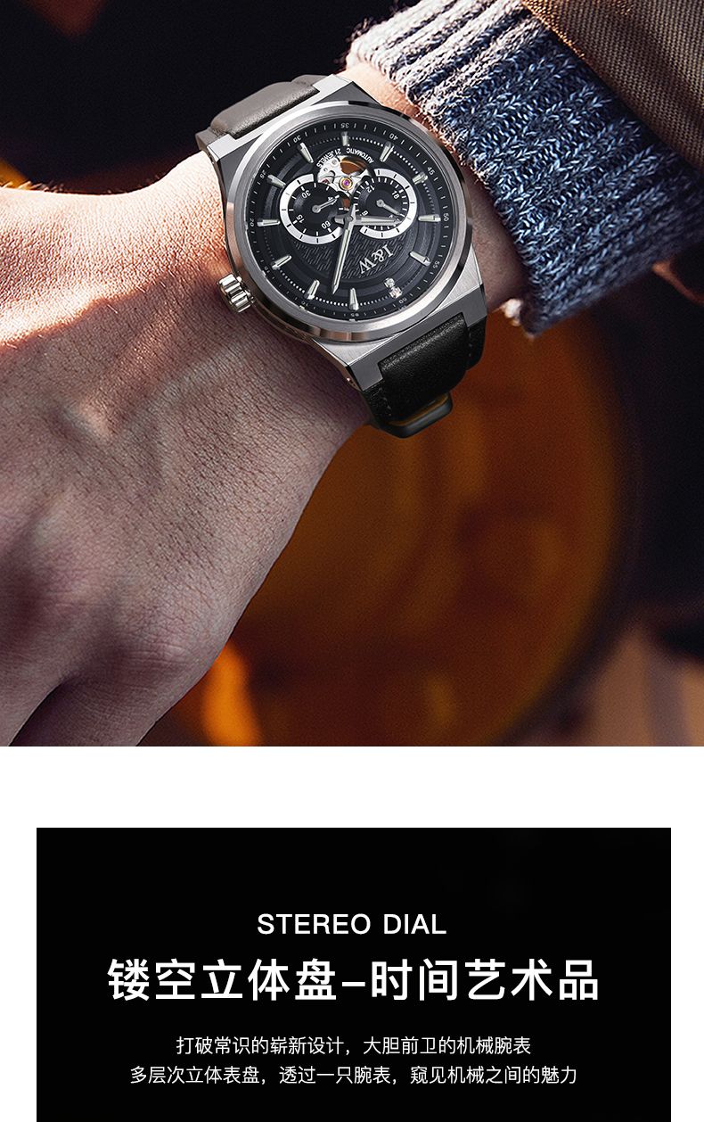 商品名称:瑞士I&W爱沃驰男士机械表探索者系列真皮腕表