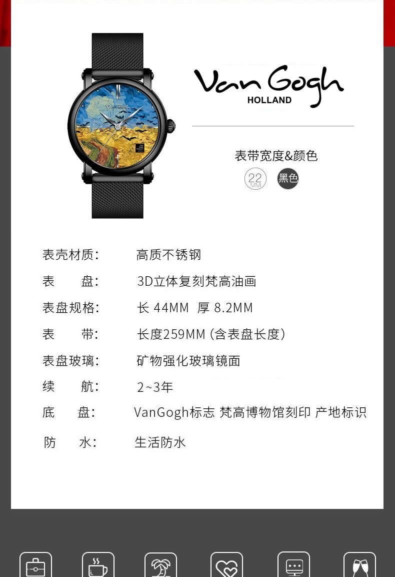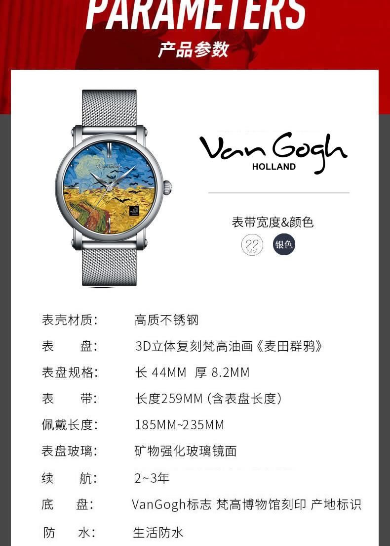 商品名称:梵高(VanGogh)瑞士手表男-麦田群鸦