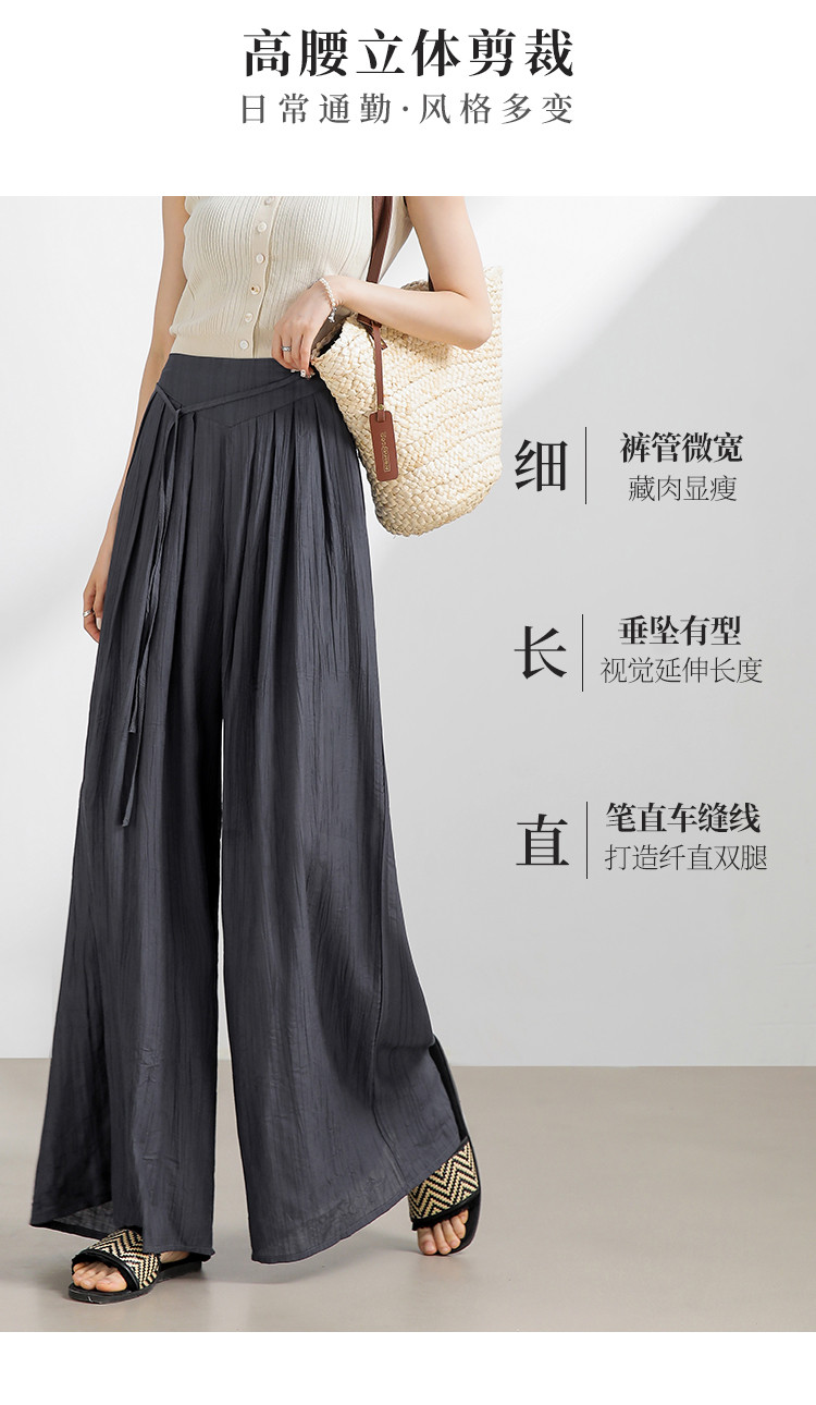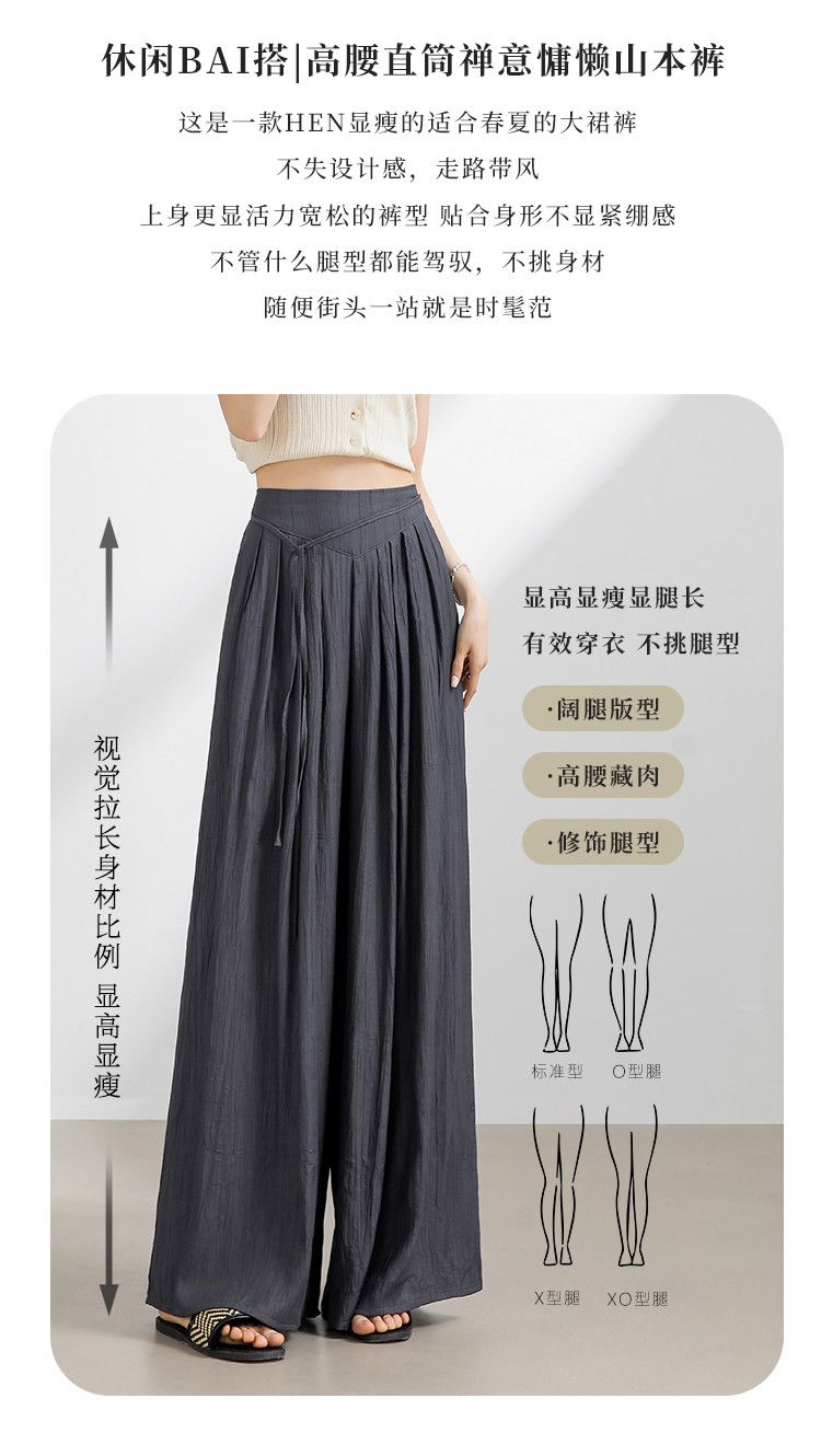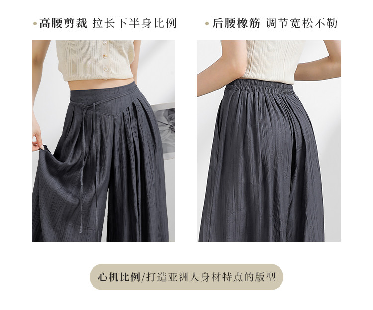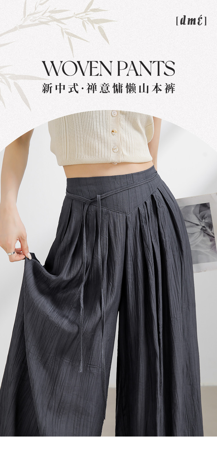 商品名称:【新中式禅意风阔腿裤】别致设计感腰头慵懒随性山本风垂感裙裤女 298113