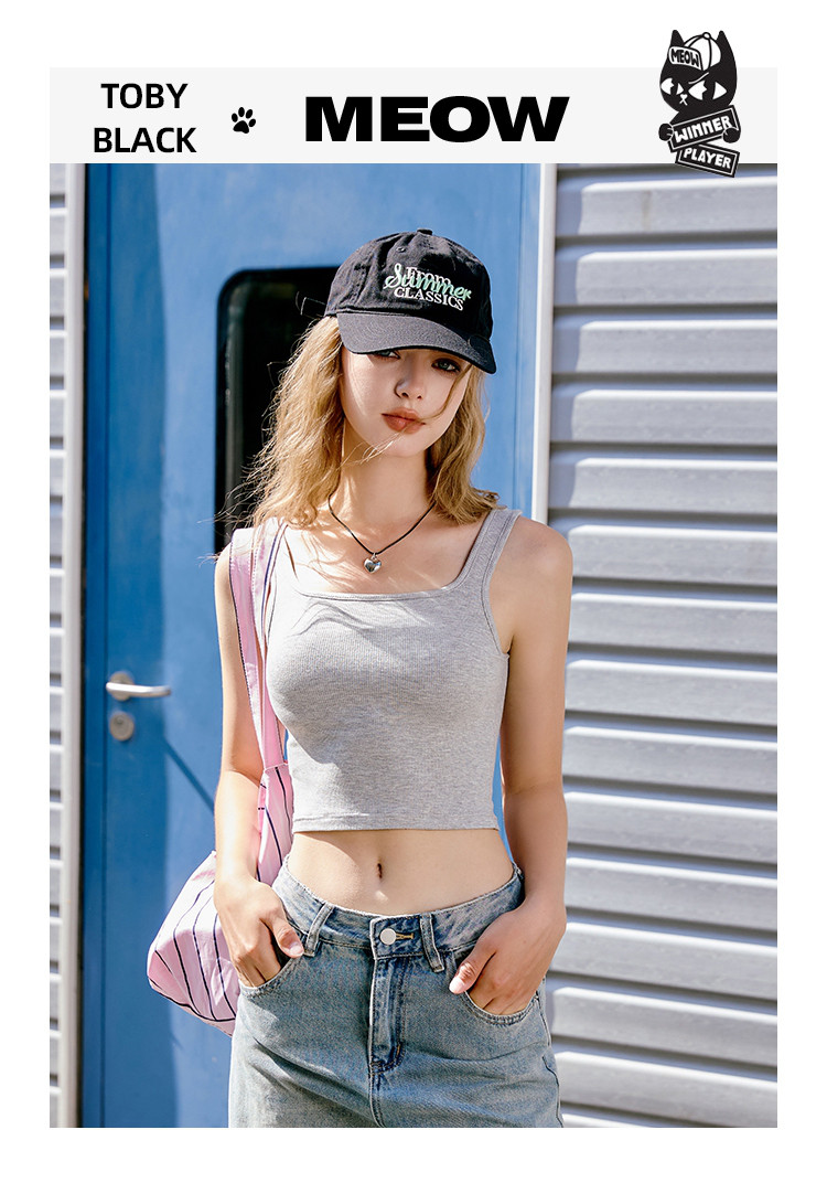 U领百搭胸垫短款女式背心秋季修身甜辣风休闲无袖上衣 059229
