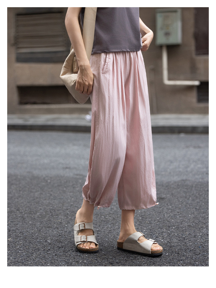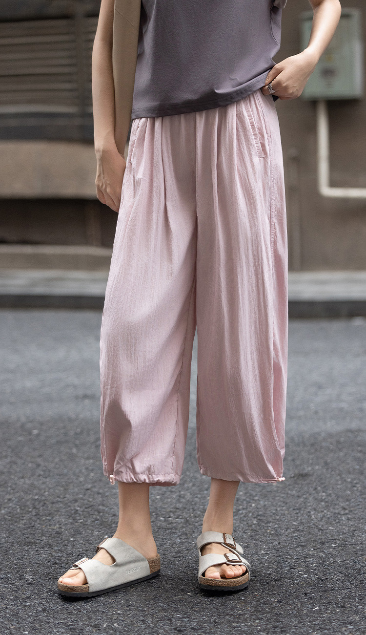 【薄纱粉九分休闲裤】夏橡筋腰头通勤穿搭束脚九分裤女 225218