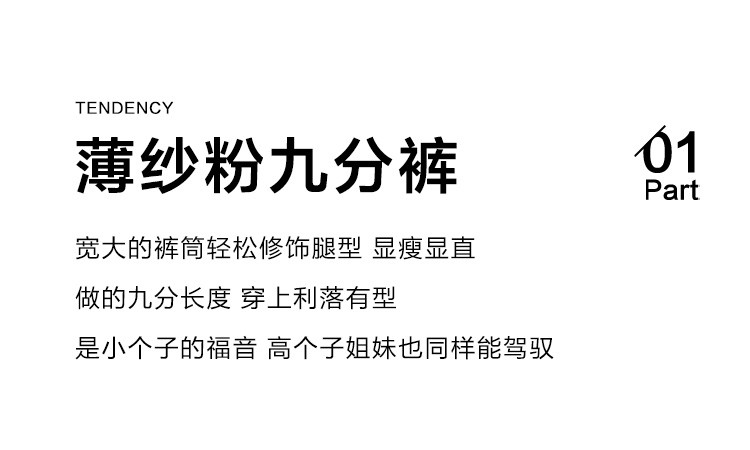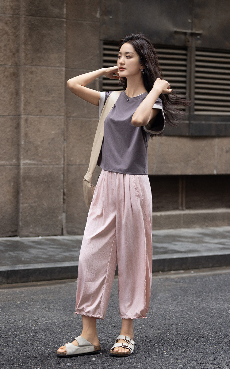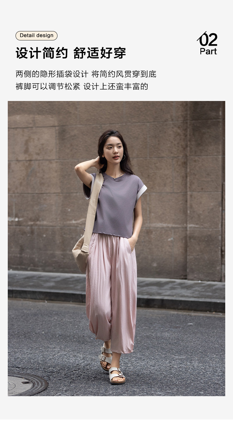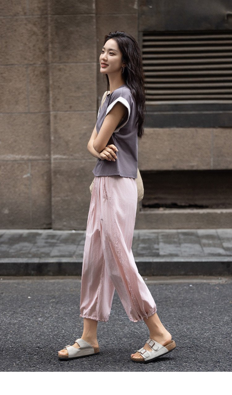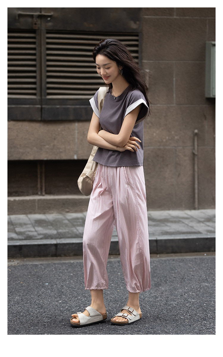 商品名称:【薄纱粉九分休闲裤】夏橡筋腰头通勤穿搭束脚九分裤女 225218