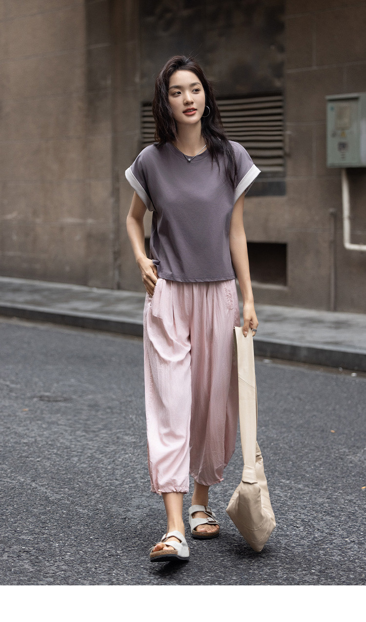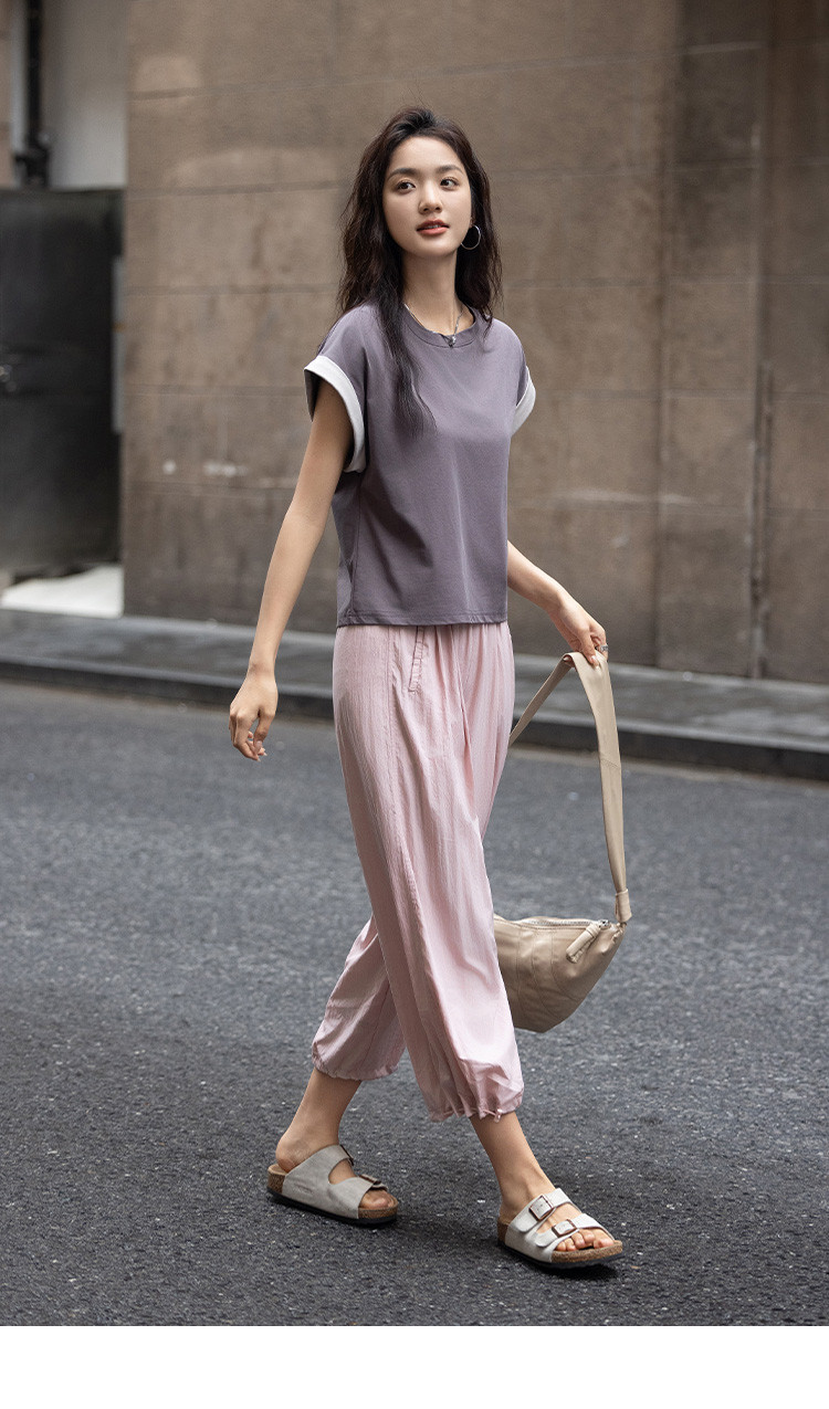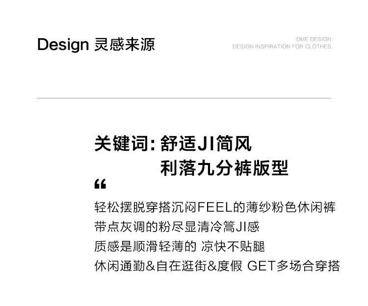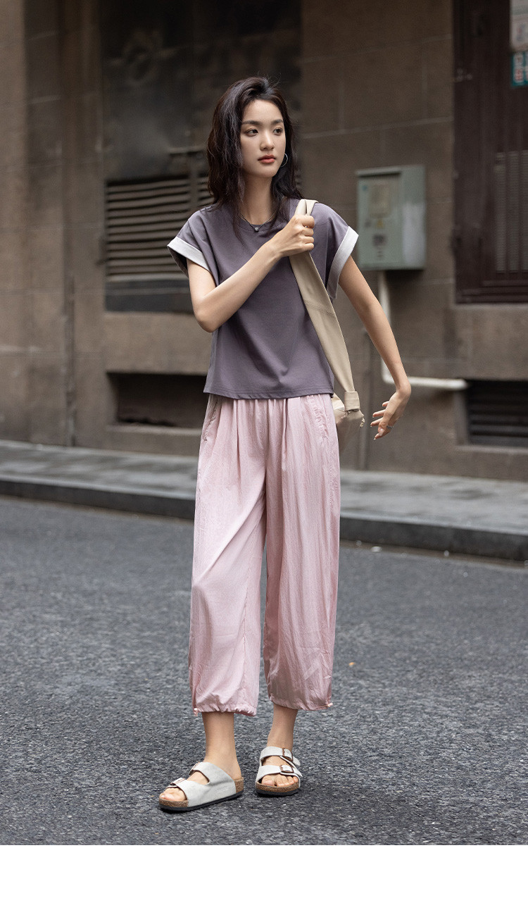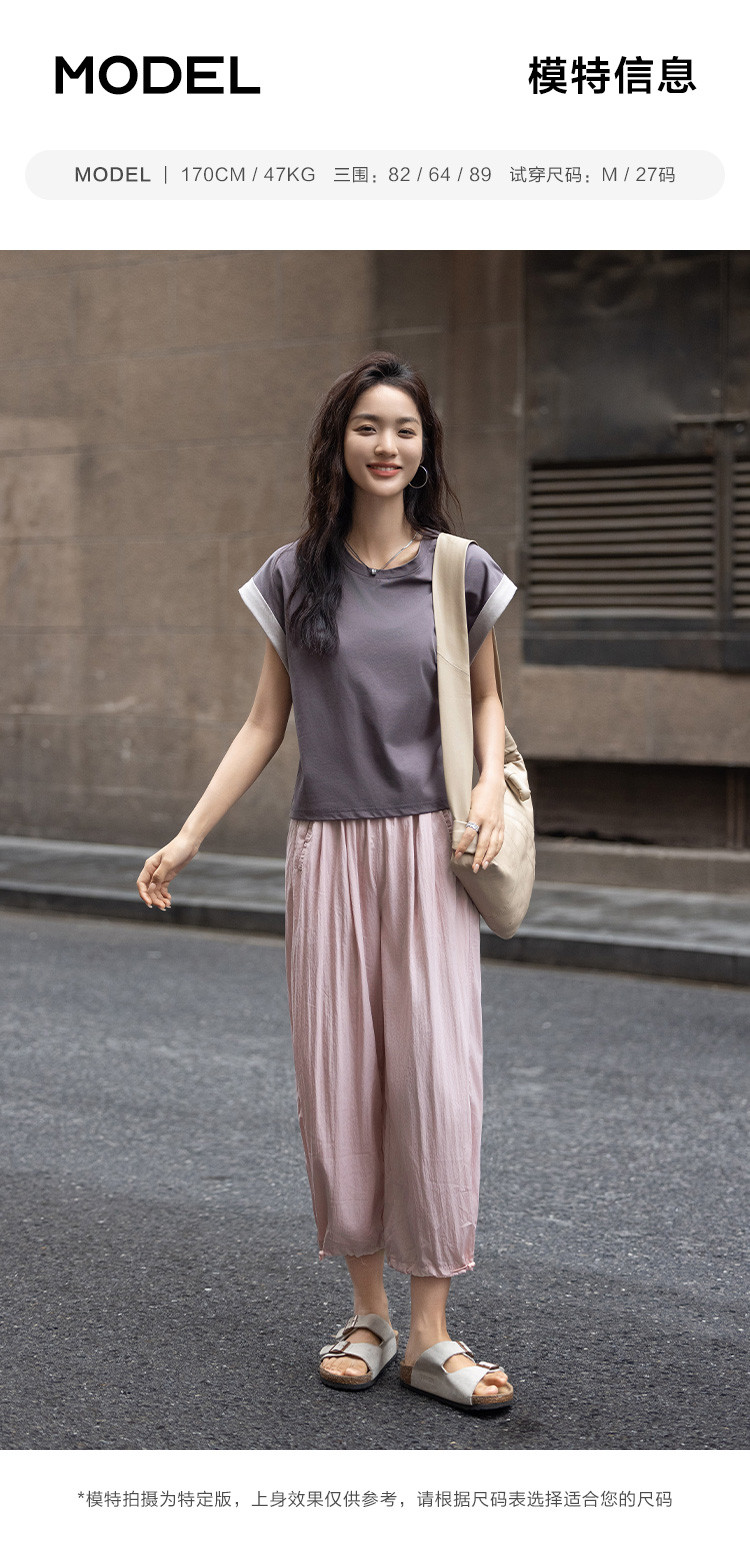 商品名称:【薄纱粉九分休闲裤】夏橡筋腰头通勤穿搭束脚九分裤女 225218