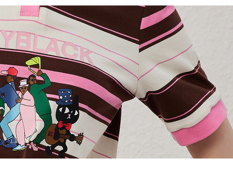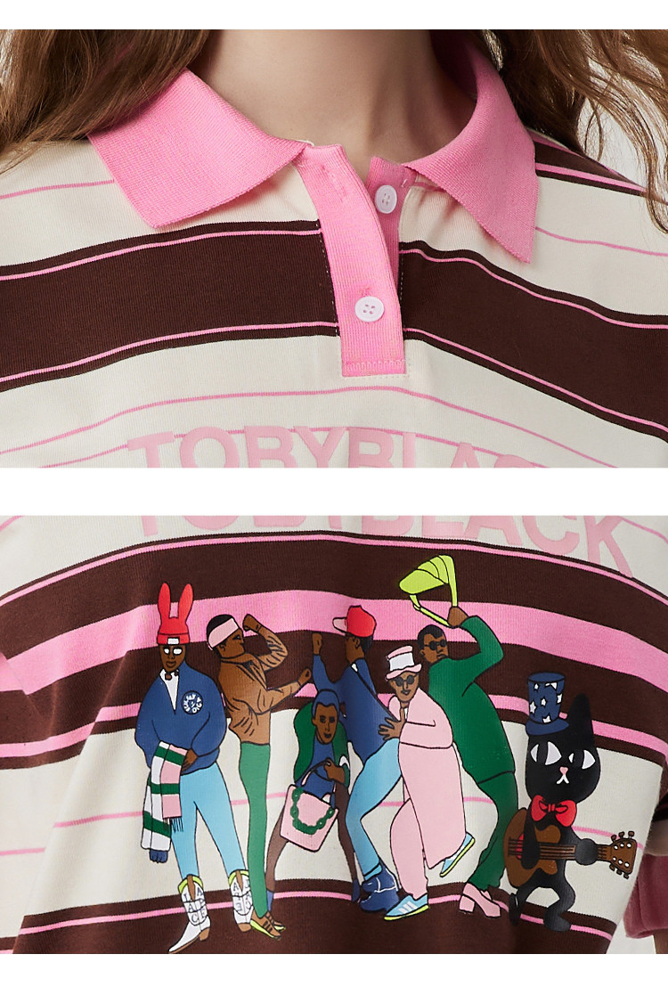 商品名称:条纹撞色设计感个性印花女式Polo衫夏季休闲短袖上衣 370525