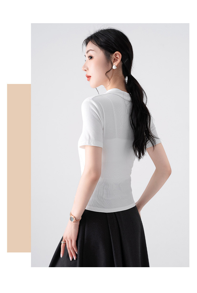 撞色翻领绑带设计感小众时尚短袖上衣潮流百搭t恤女式T恤 376139