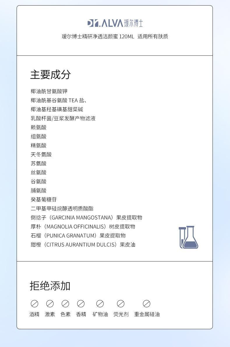 商品名称:Dr.Alva瑷尔博士洁颜蜜氨基酸洗面奶温和清洁洁面乳 120ml
