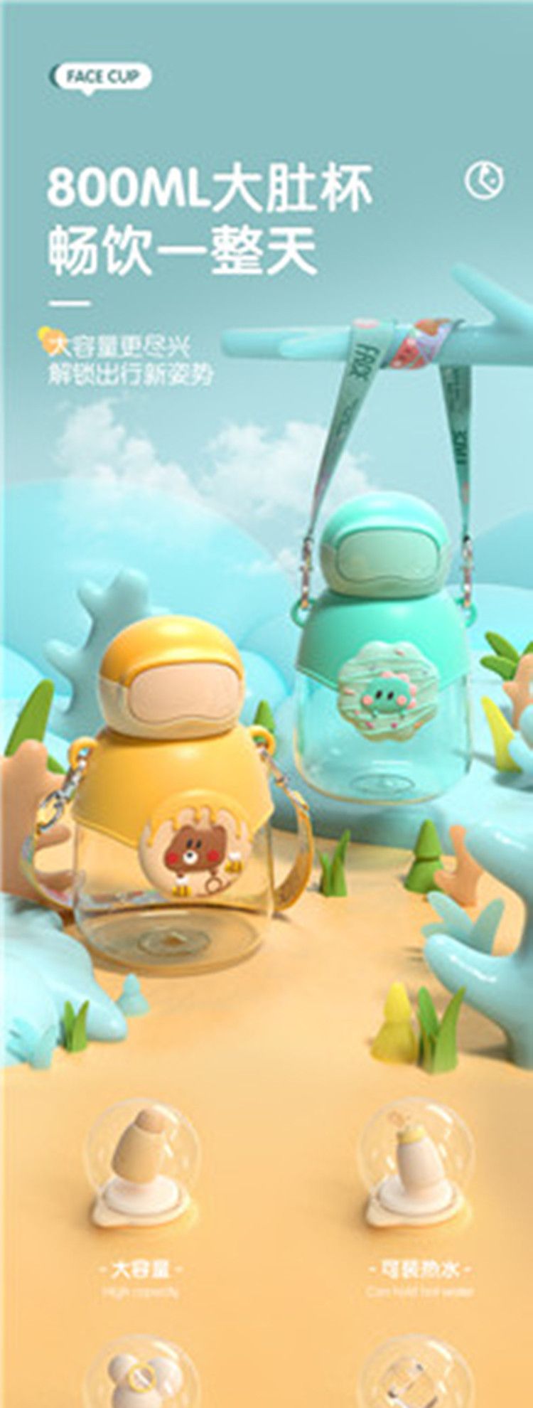 FACE 甜品乐园大肚杯(含杯带/赠贴纸)(800ml)