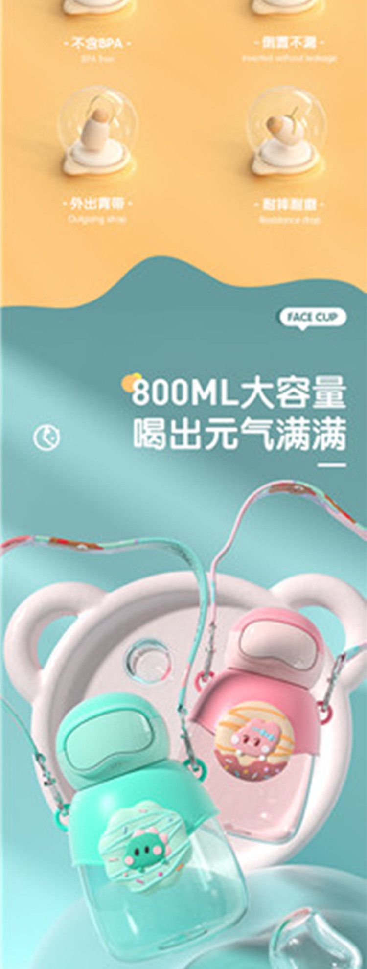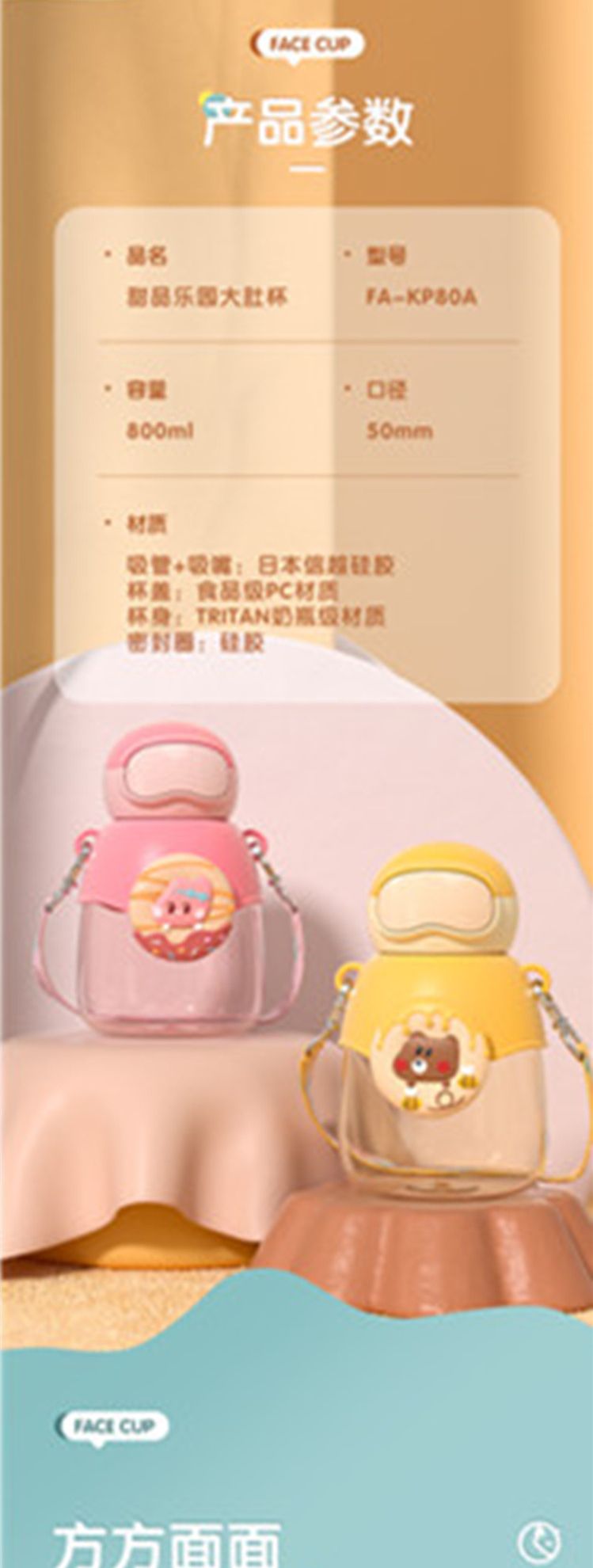 商品名称:FACE 甜品乐园大肚杯(含杯带/赠贴纸)(800ml)