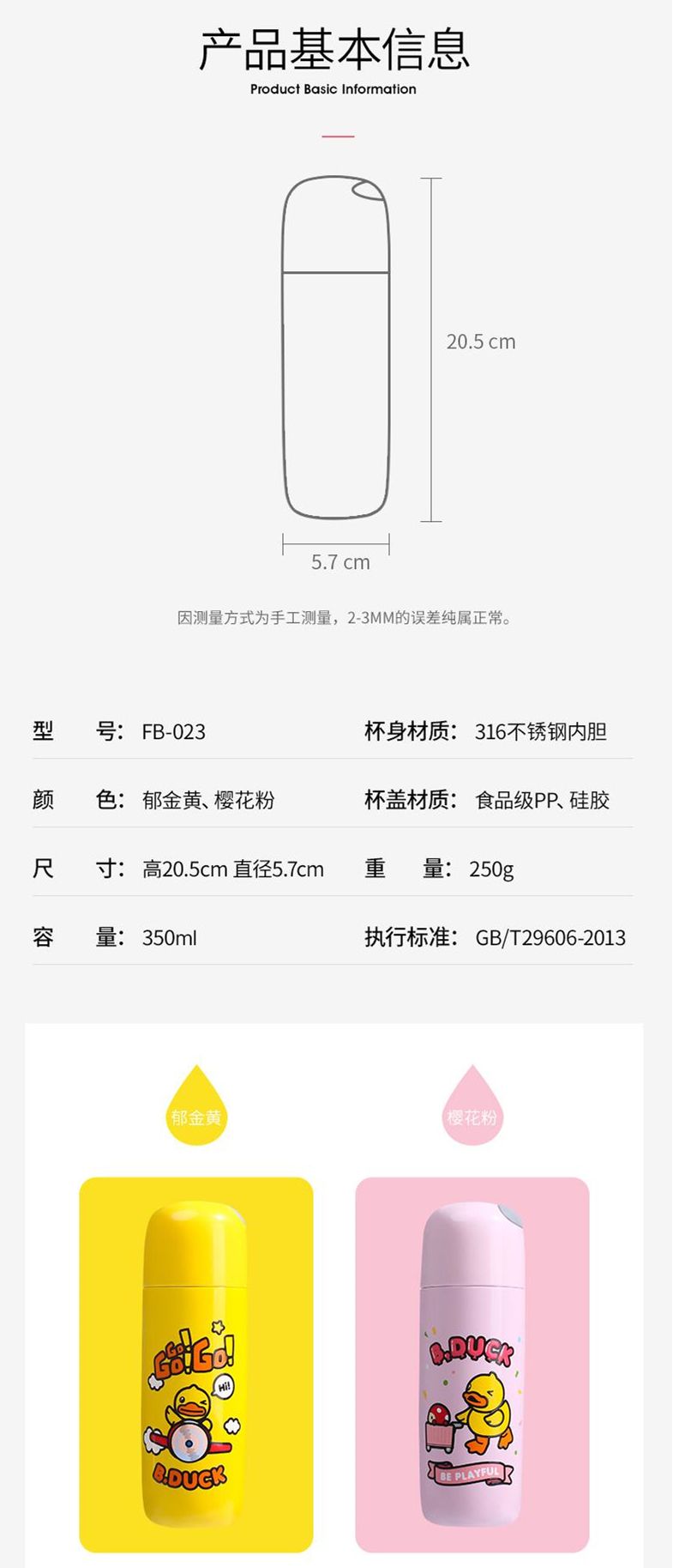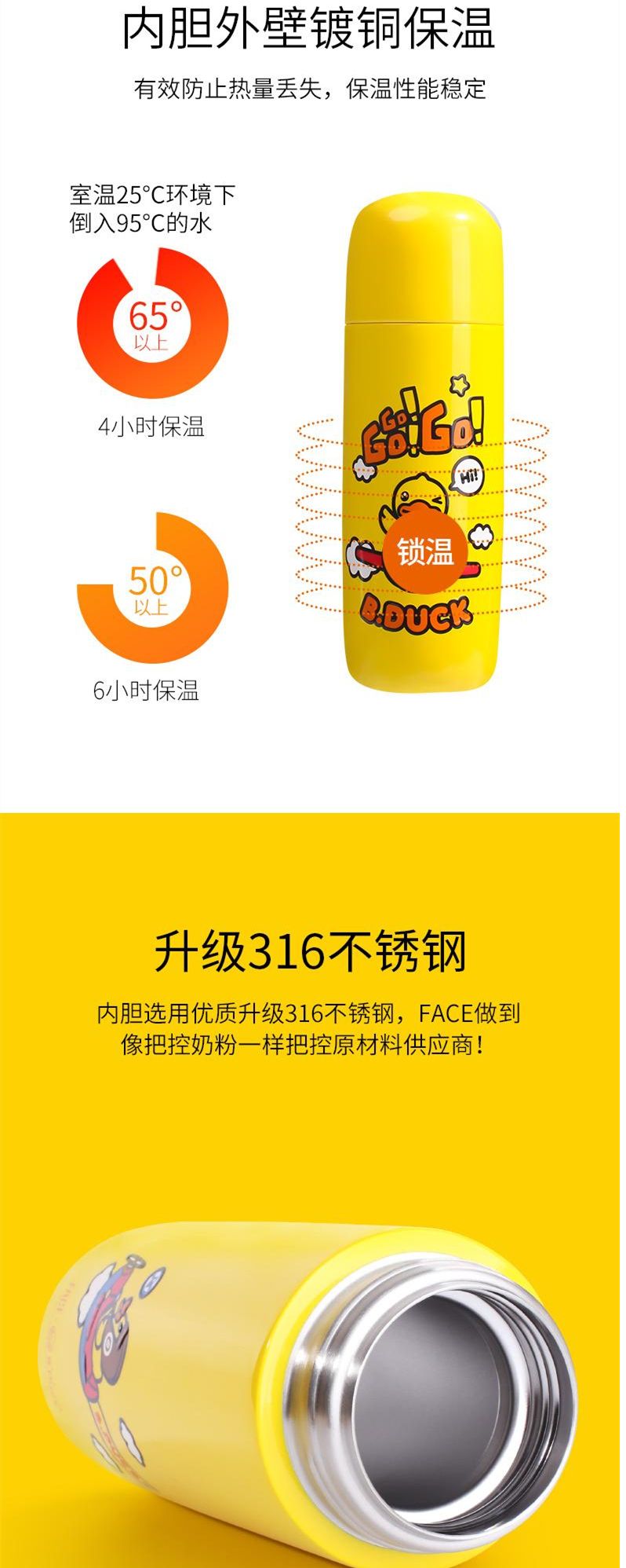 商品名称:FACE×B.Duck 小黄鸭提绳保温杯(350ml)
