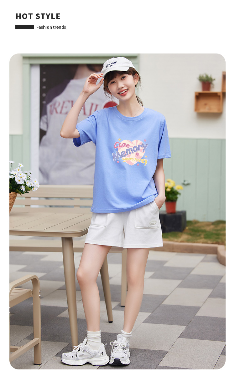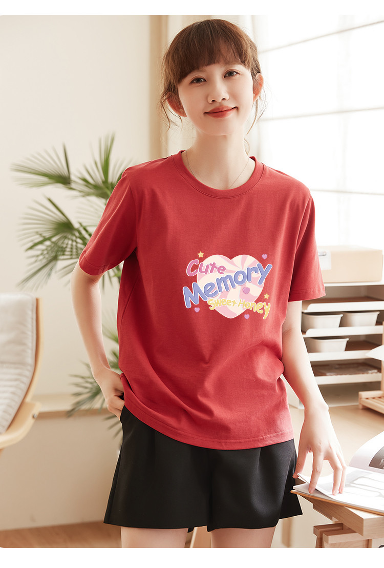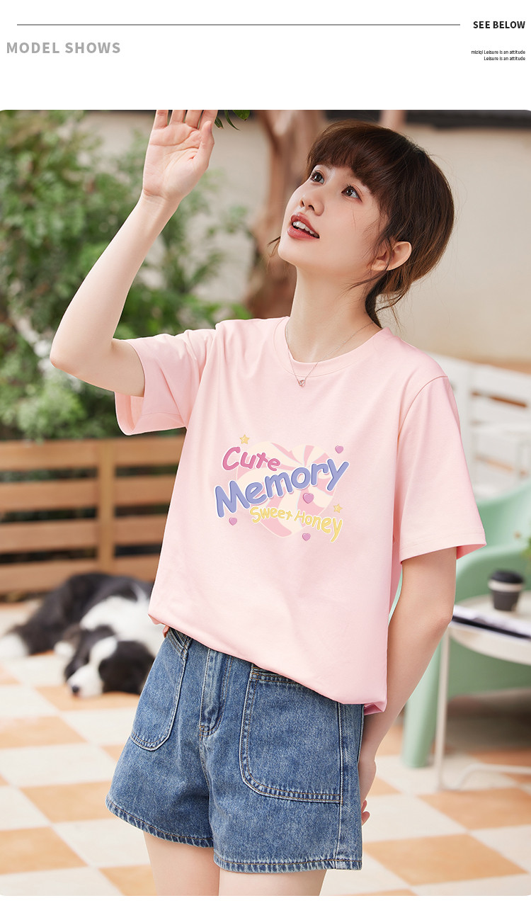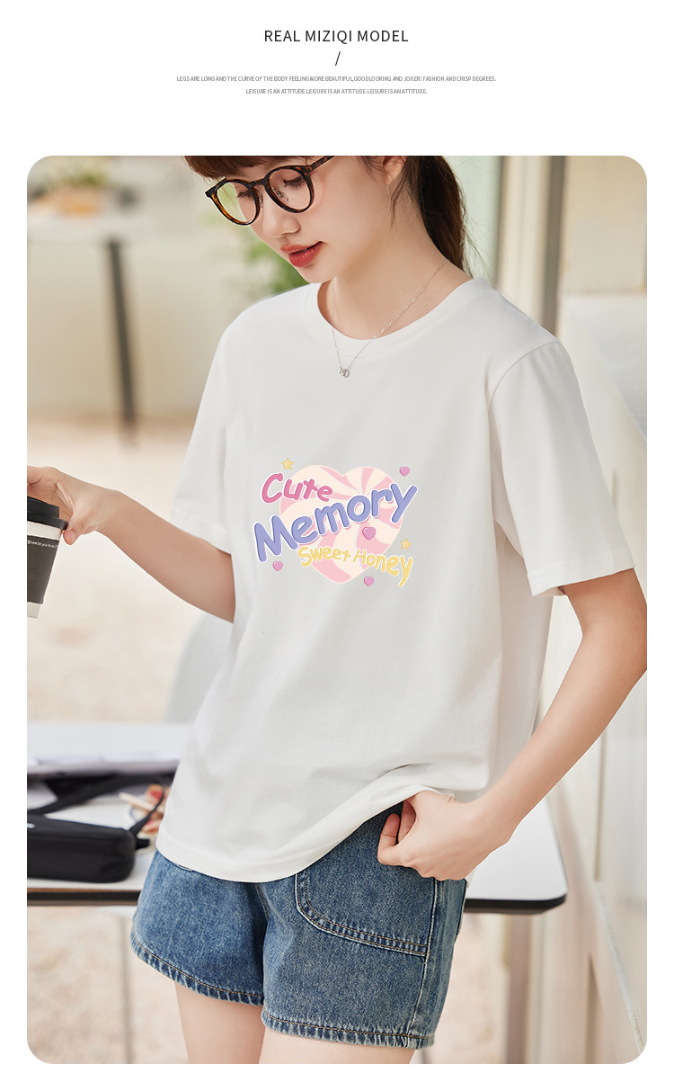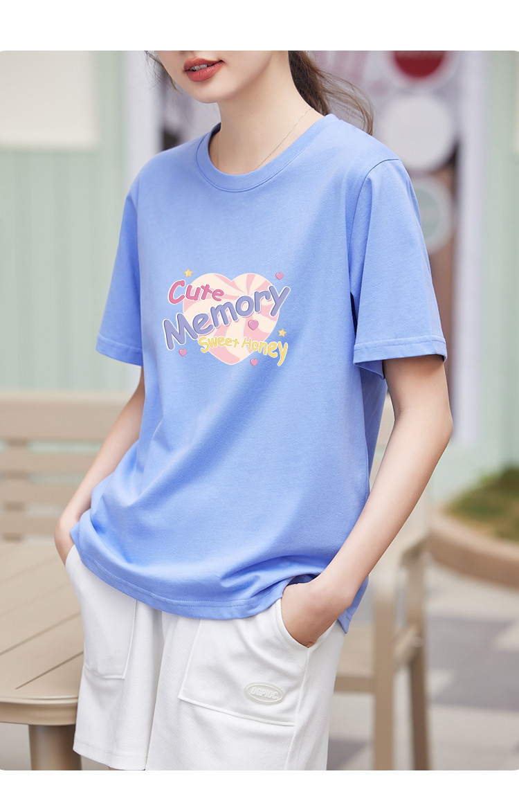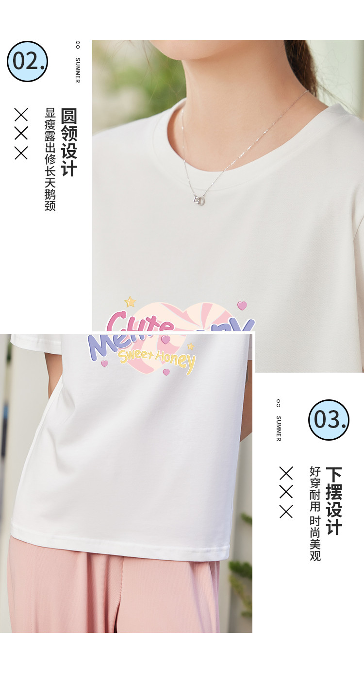 商品名称:米子旗趣味印花圆领T恤夏季女青春减龄百搭舒适短袖上衣 531738