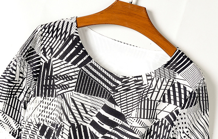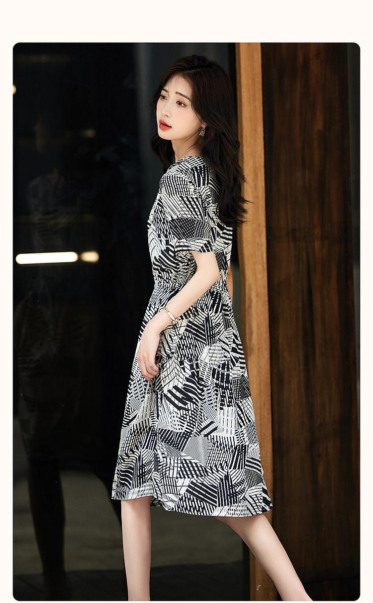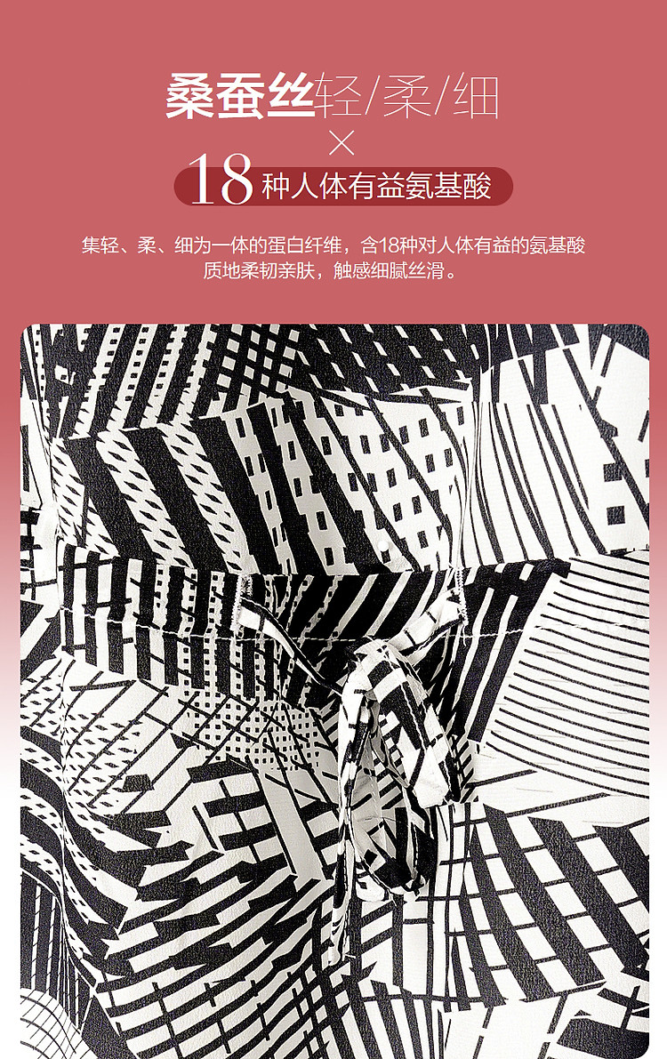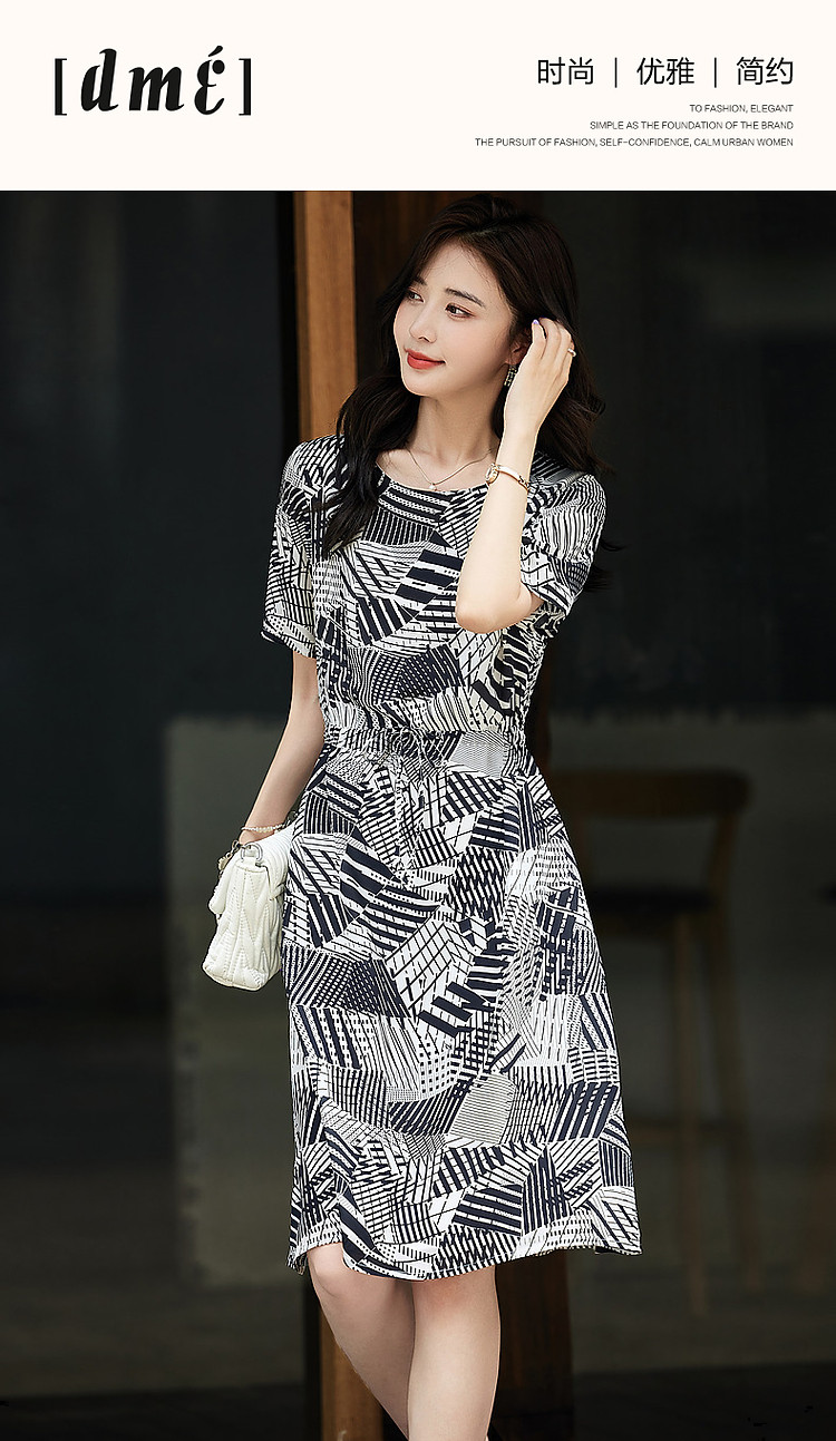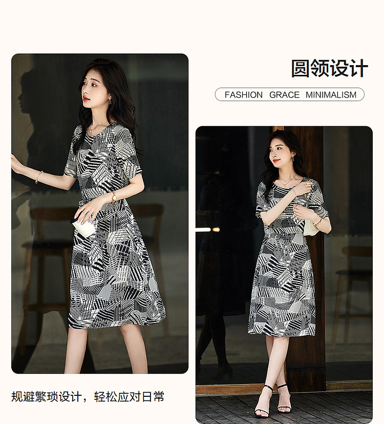 商品名称:【岁月如歌】夏轻奢桑蚕丝圆领调节腰抽绳撞色印花连衣裙 266945