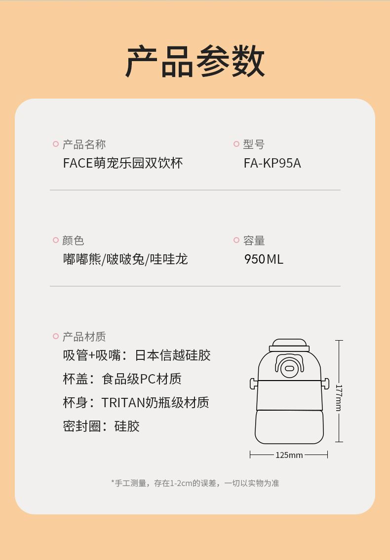 商品名称:FACE 萌宠乐园双饮杯(含杯带/含滴胶)(950ml)