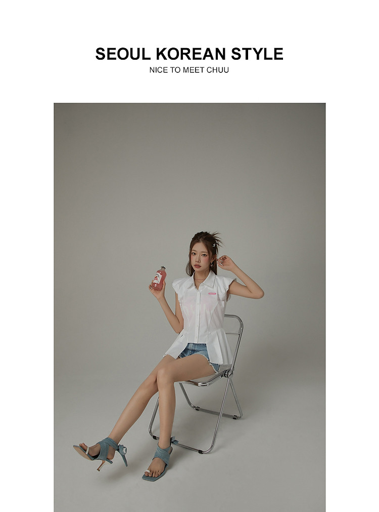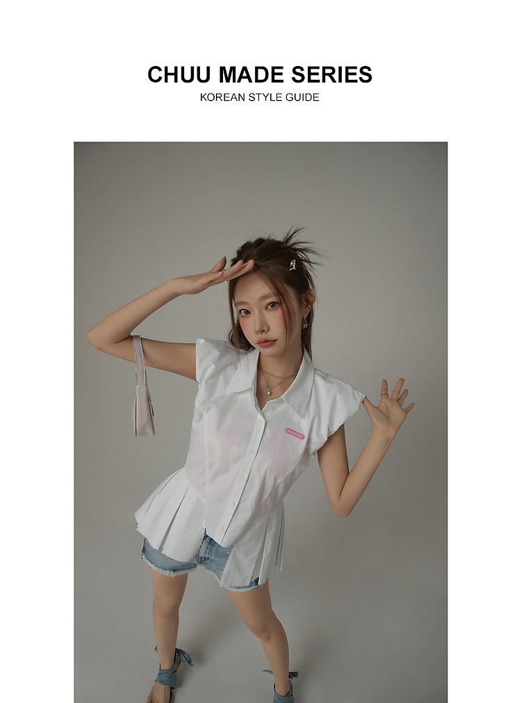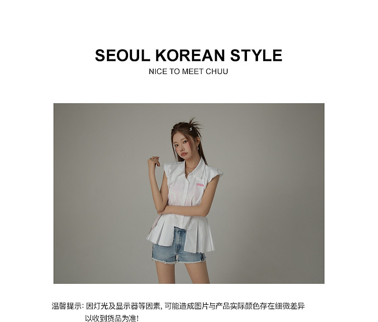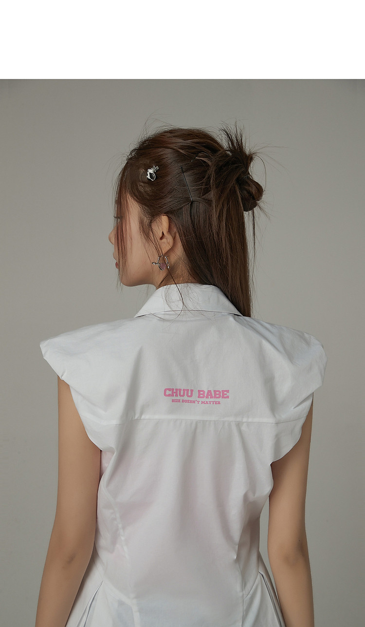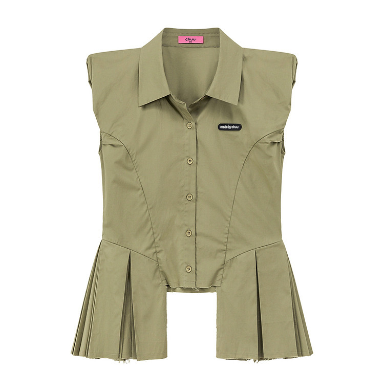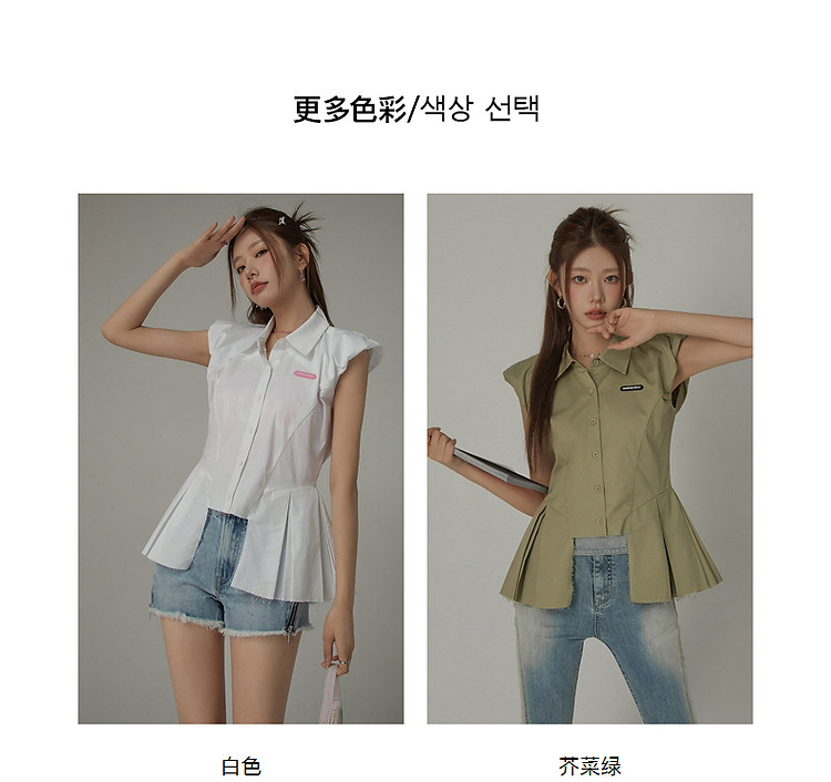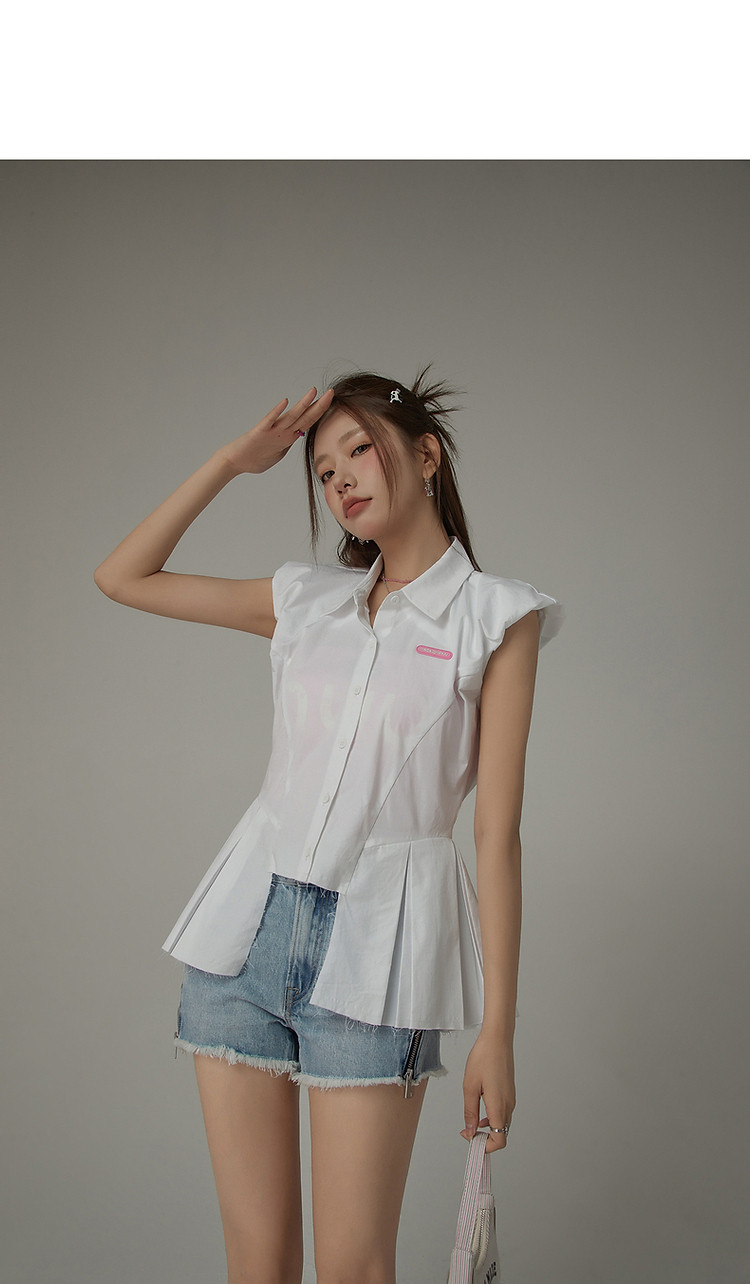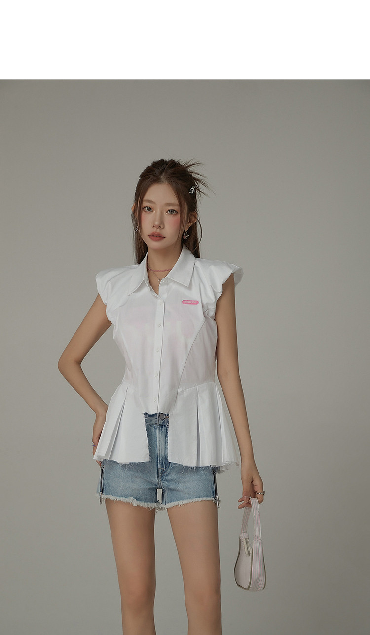 商品名称:毛边无袖衬衫女夏设计感个性小众减龄褶皱辣妹上衣 652435
