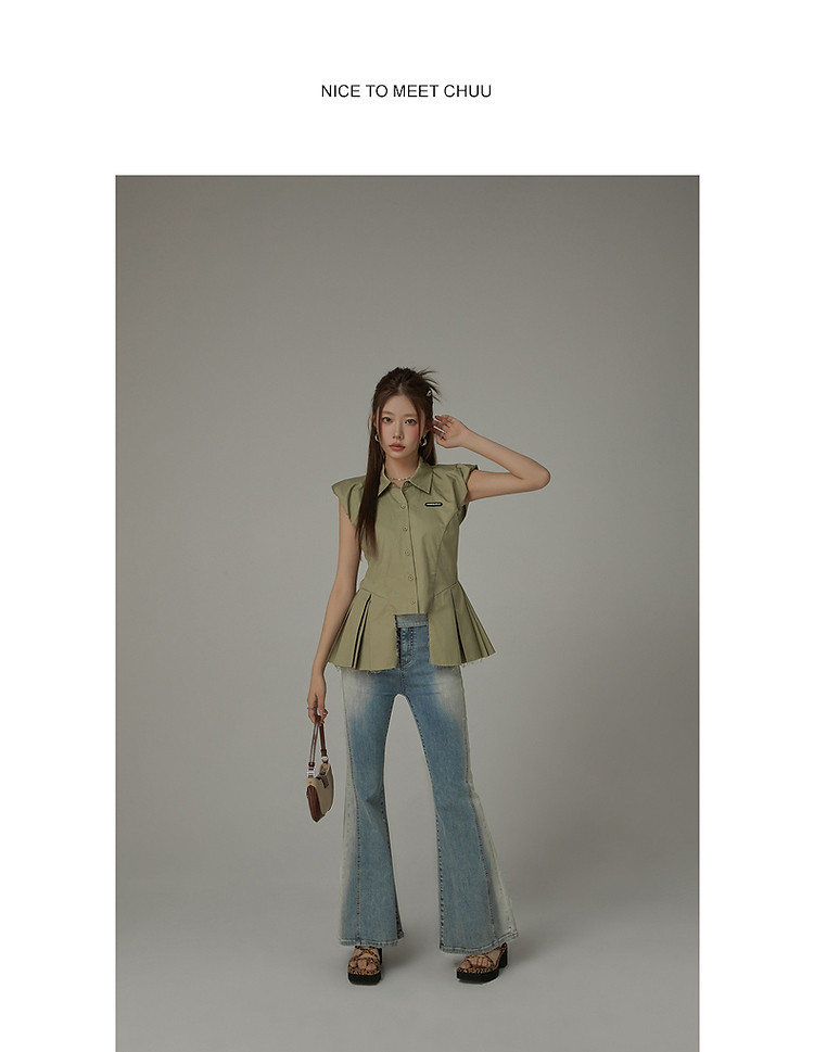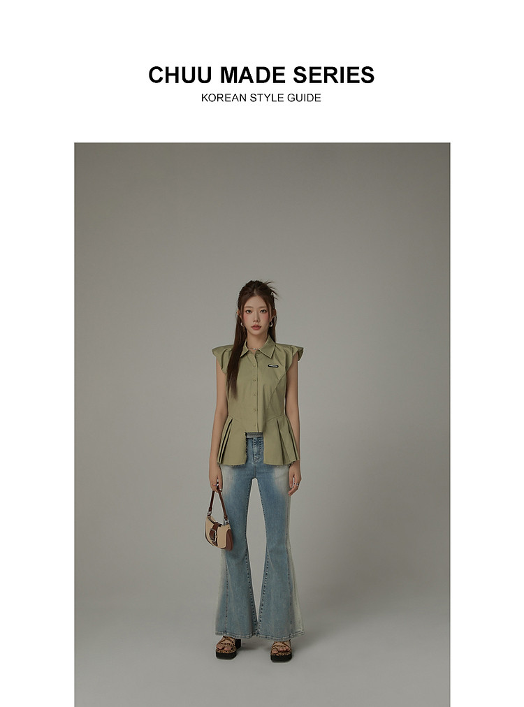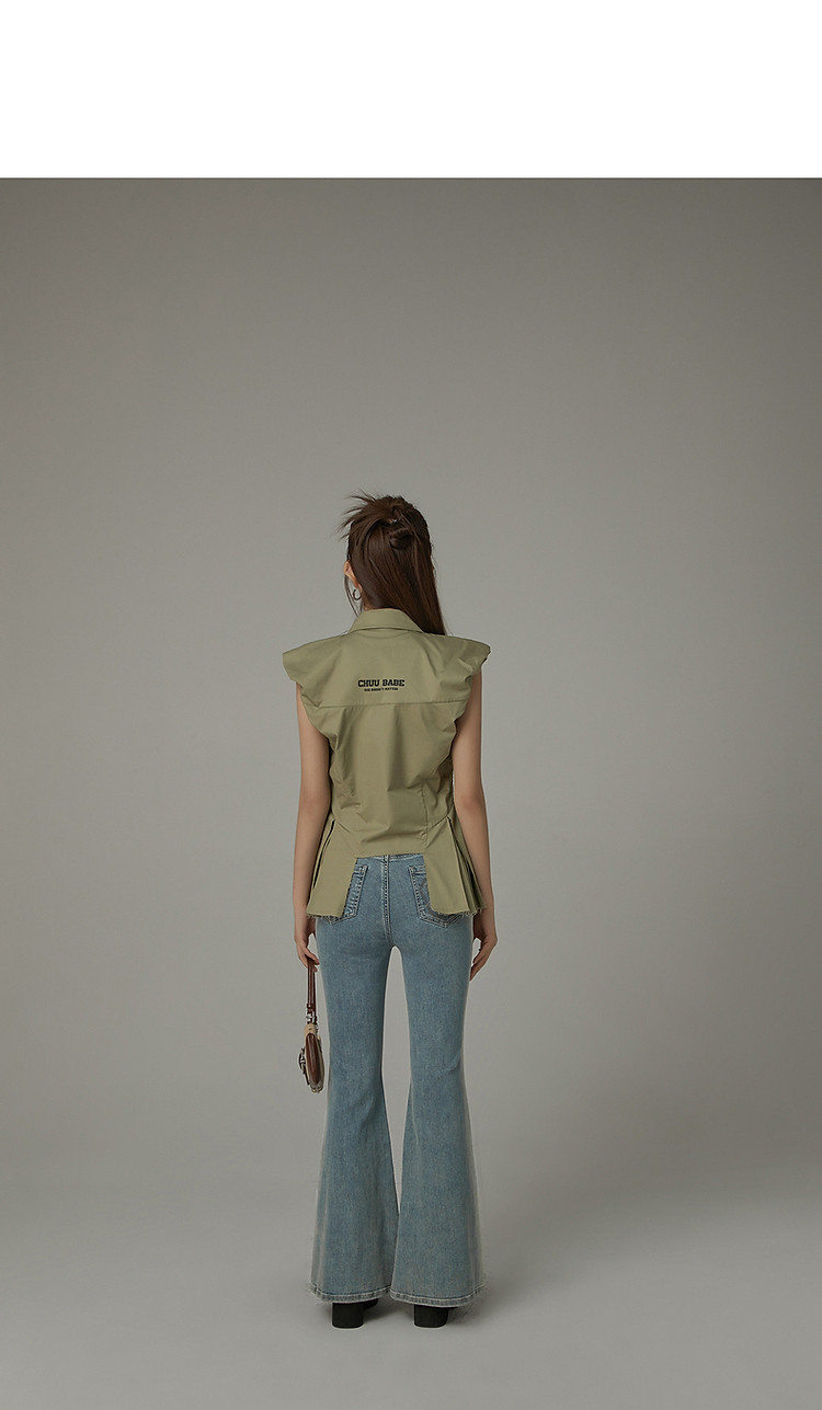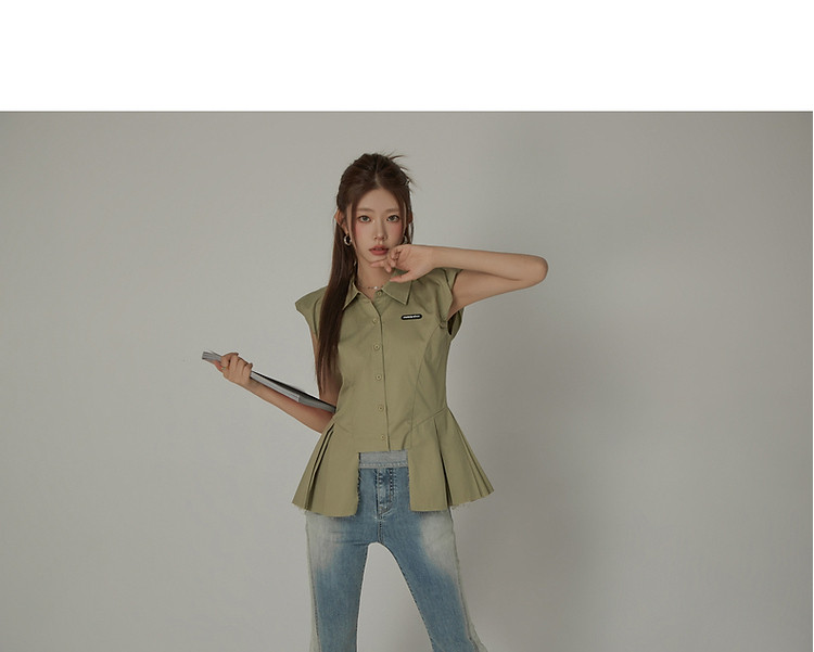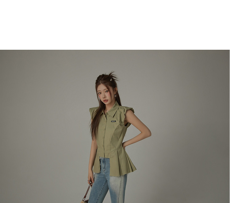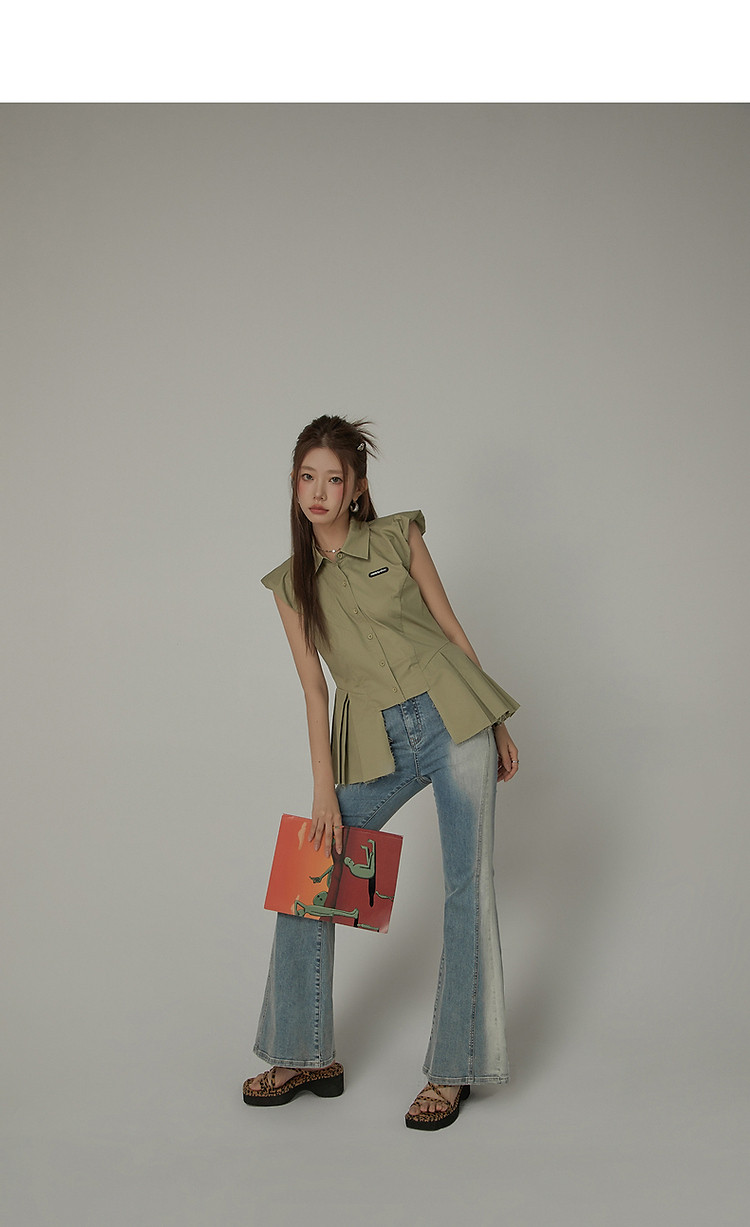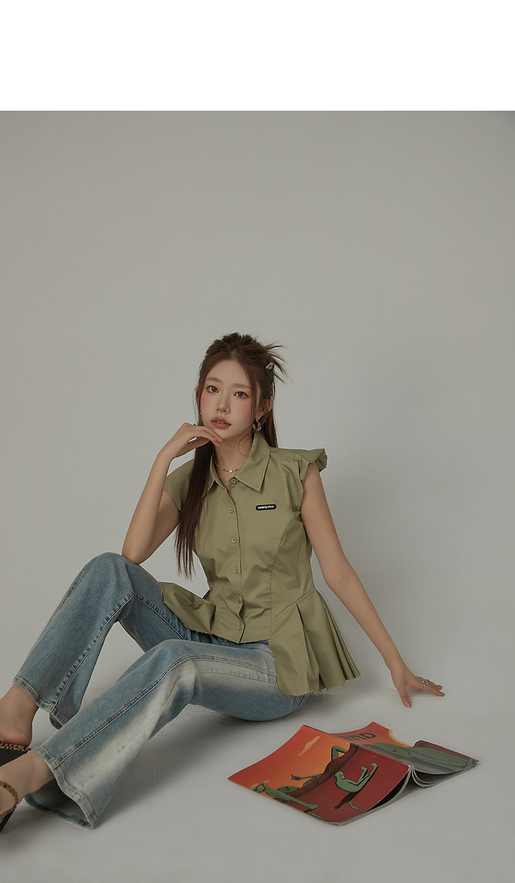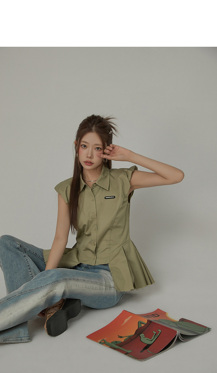 毛边无袖衬衫女夏设计感个性小众减龄褶皱辣妹上衣 652435