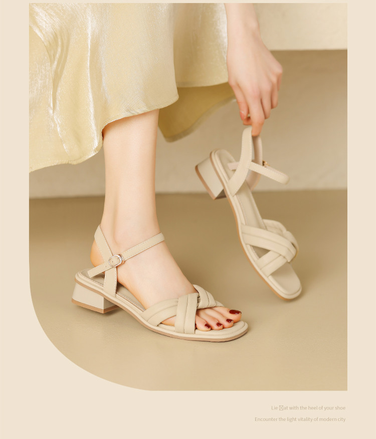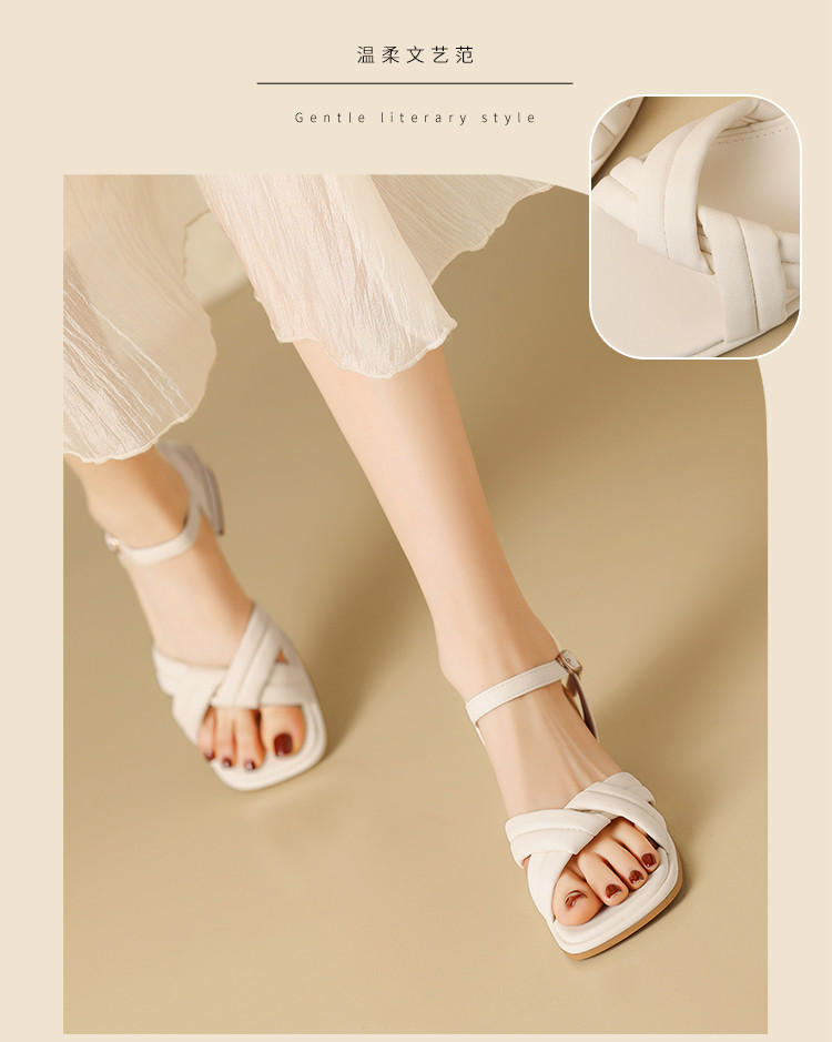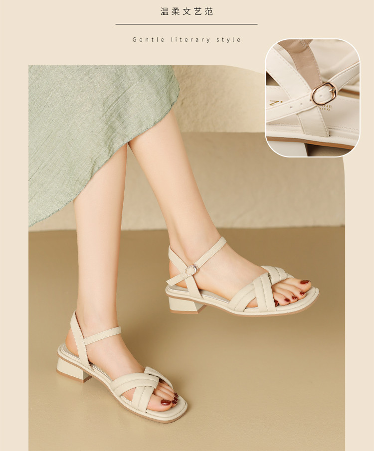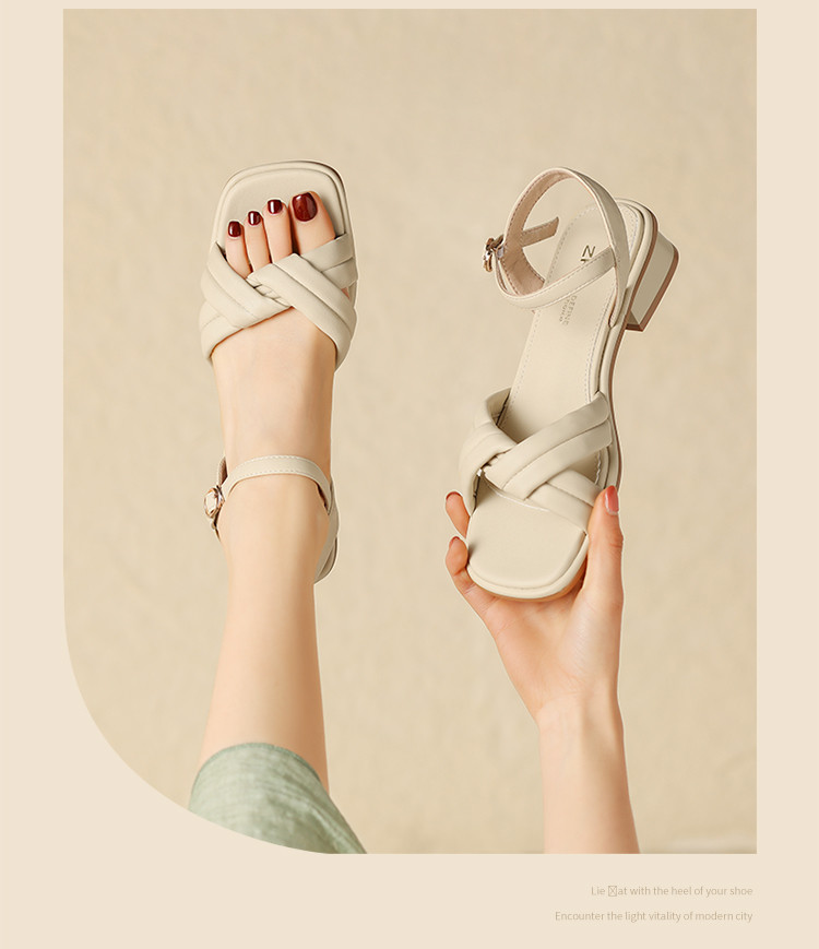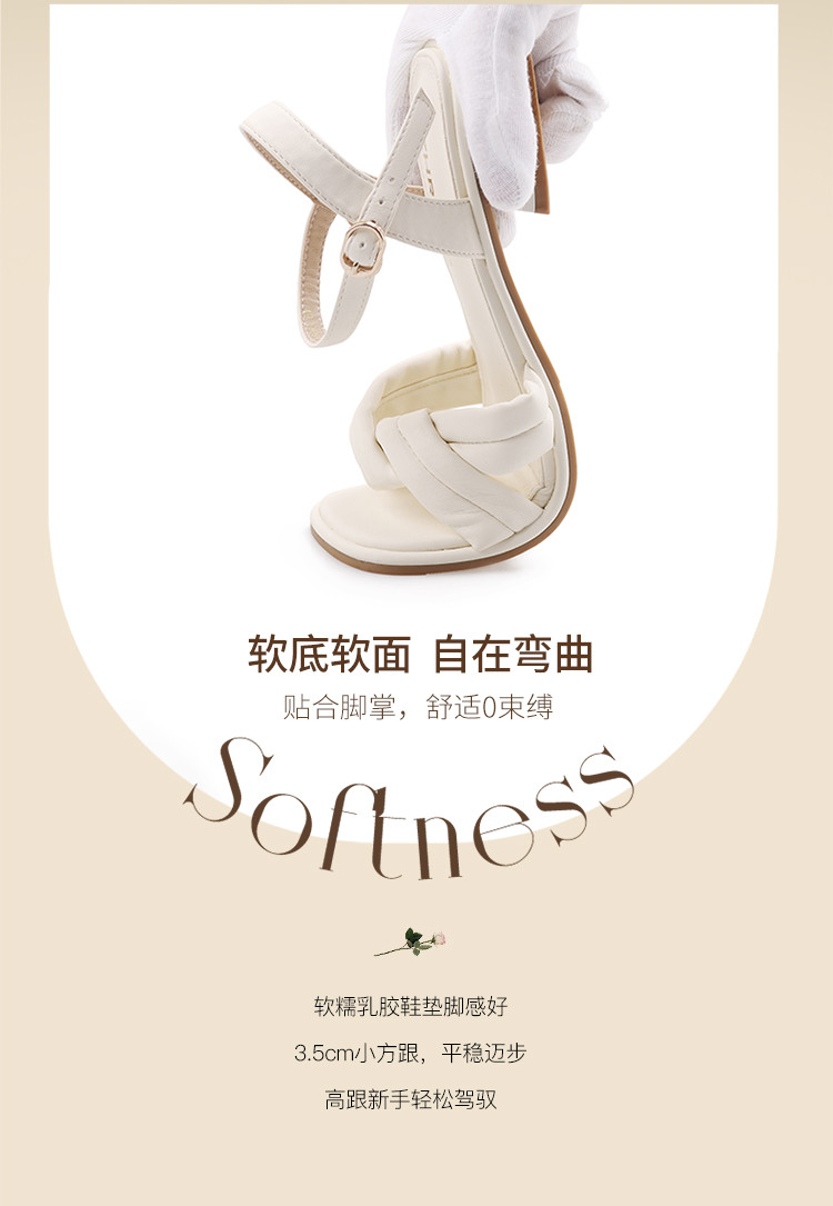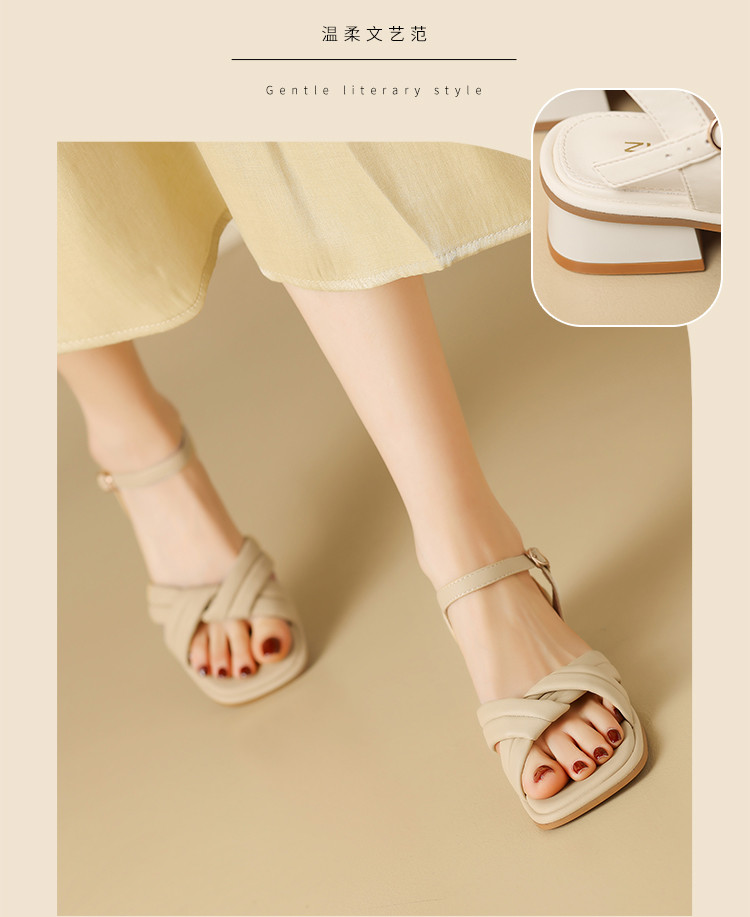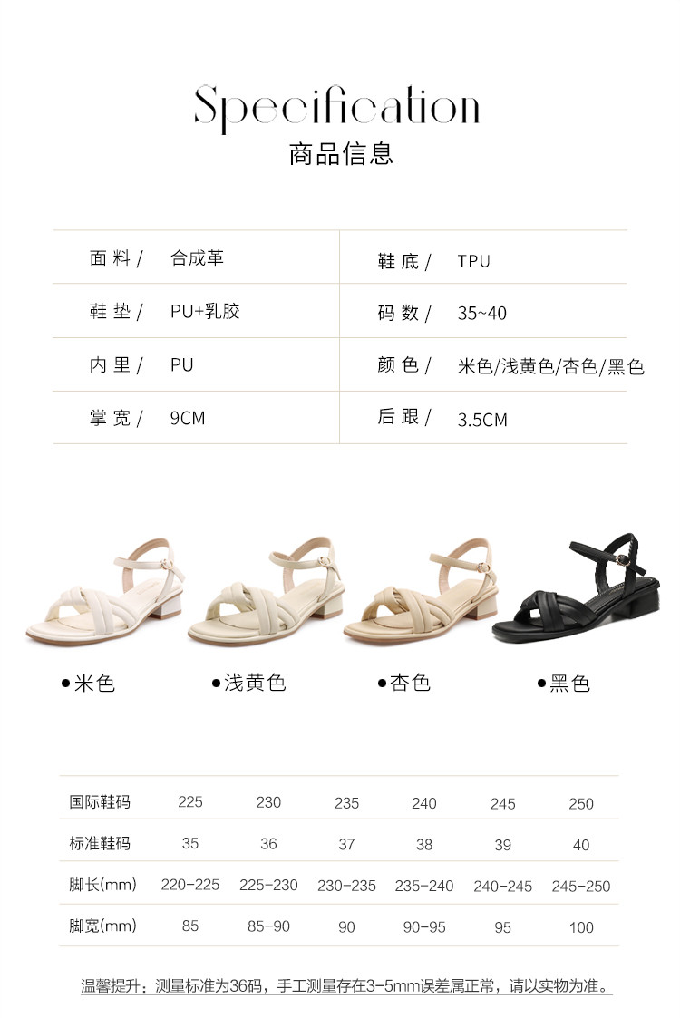 商品名称:【扭结帮面】粗跟凉鞋女气质一字带凉鞋女百搭女士凉鞋女夏季女鞋 919424
