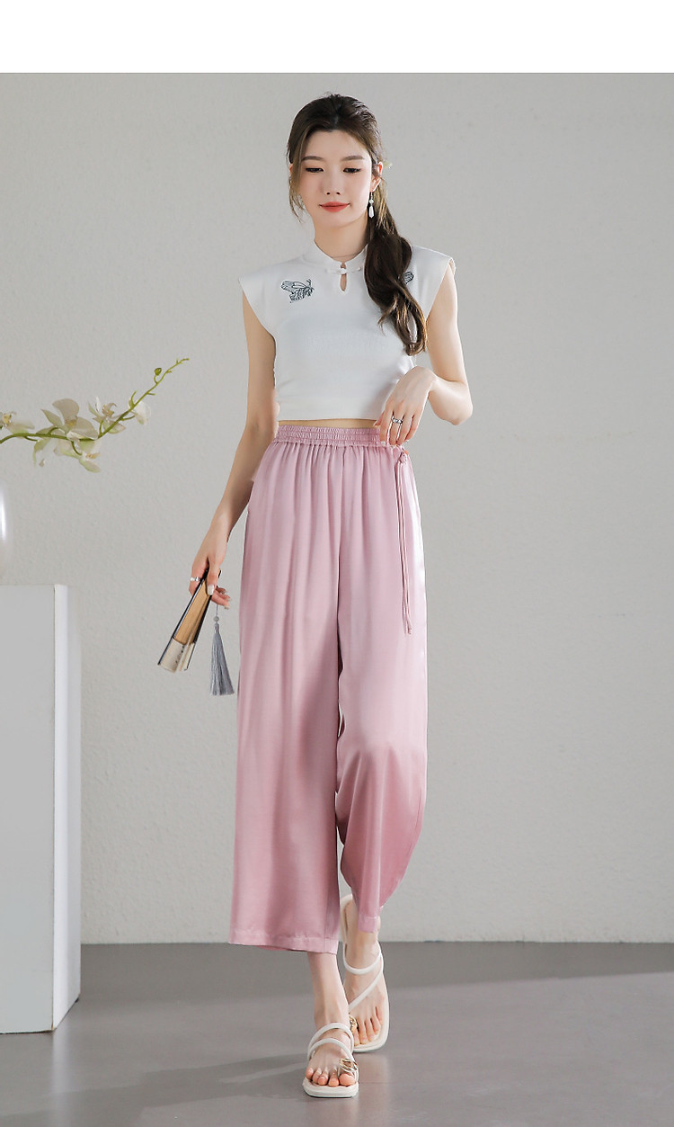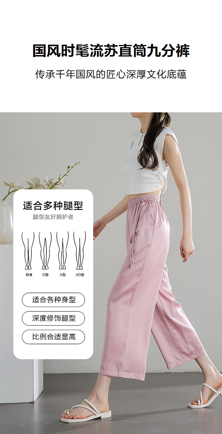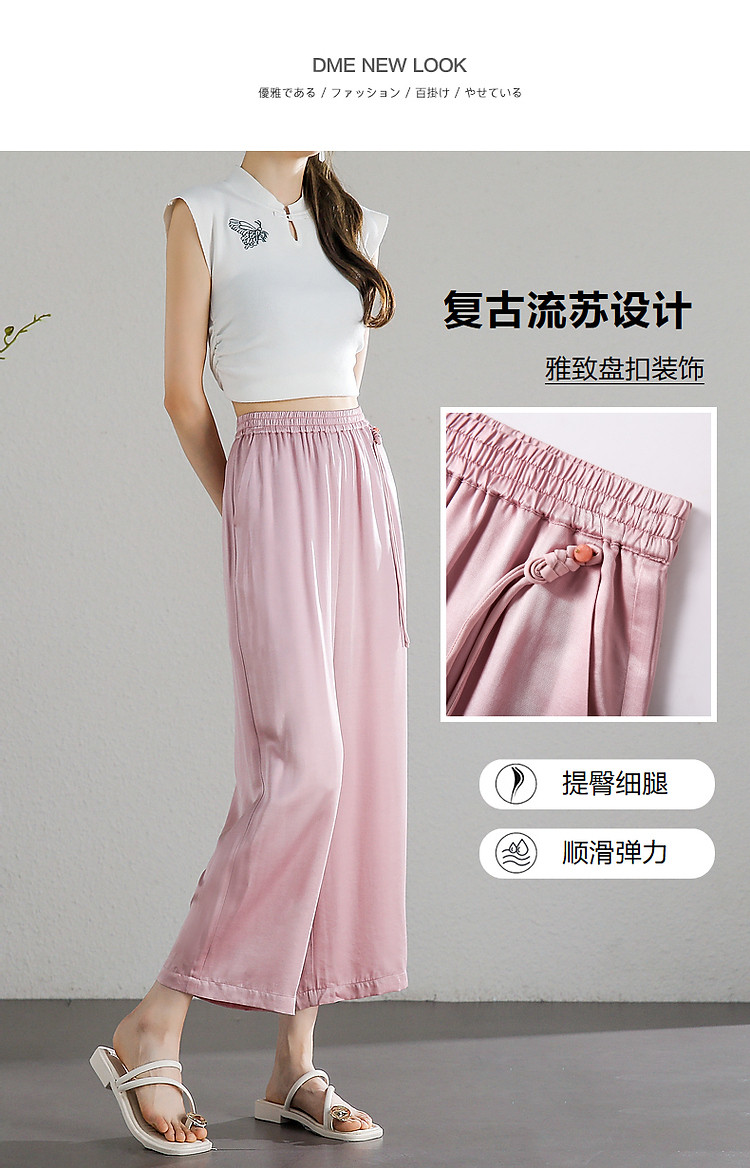 商品名称:【墨染鸦青】夏国风新中式含桑蚕丝流苏九分裤盘扣系绳休闲裤 484033