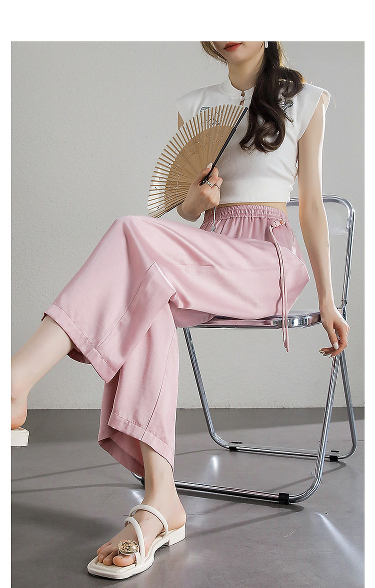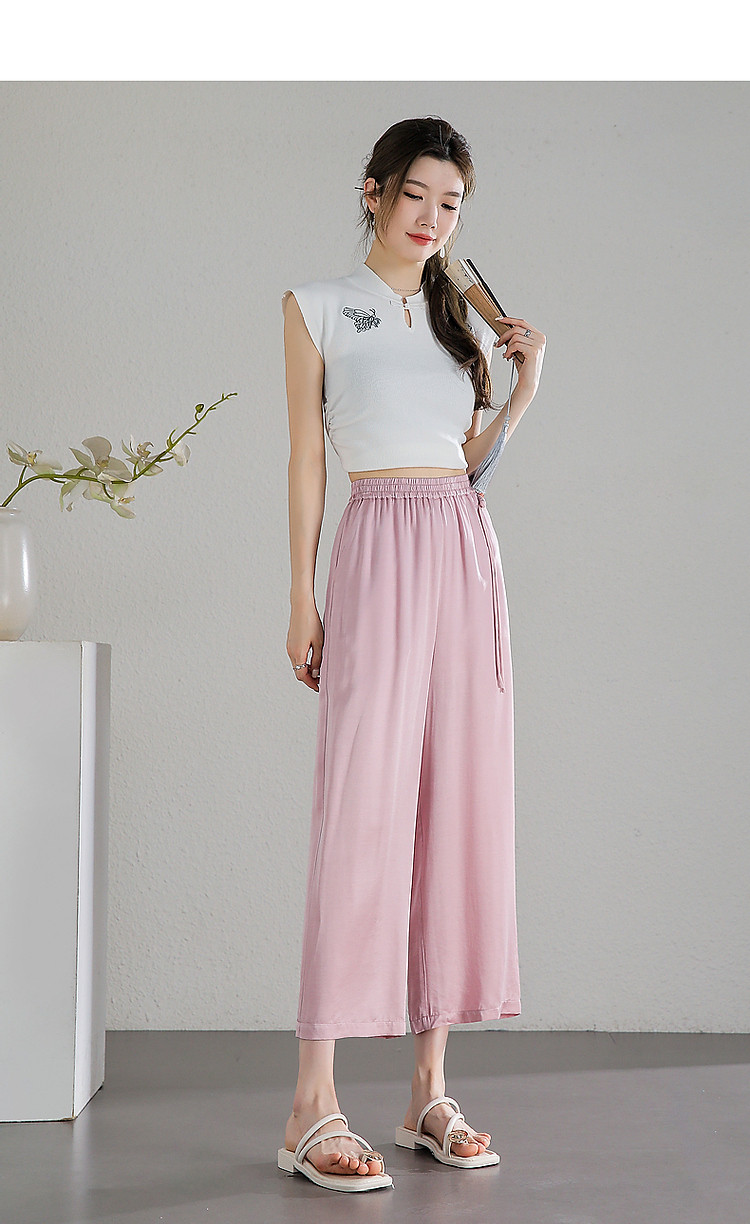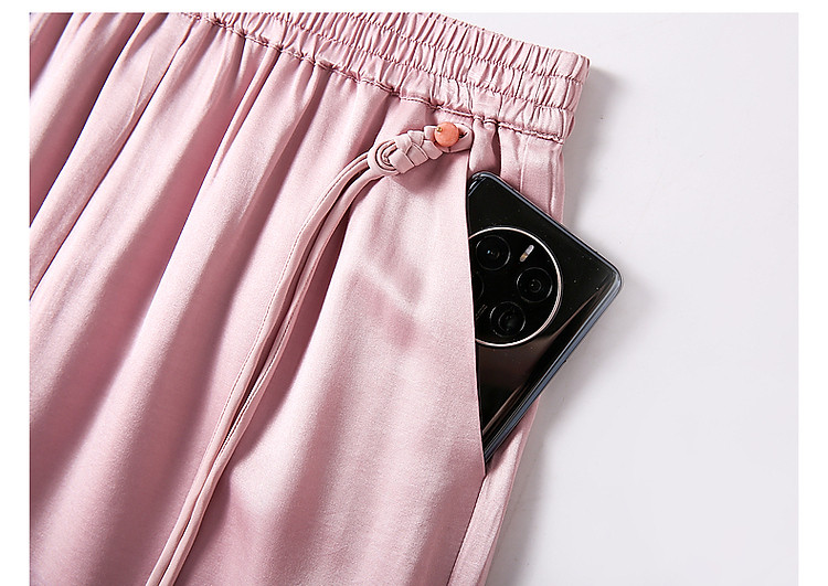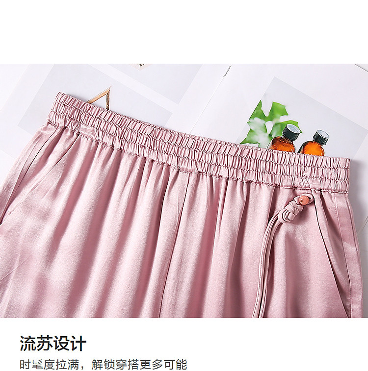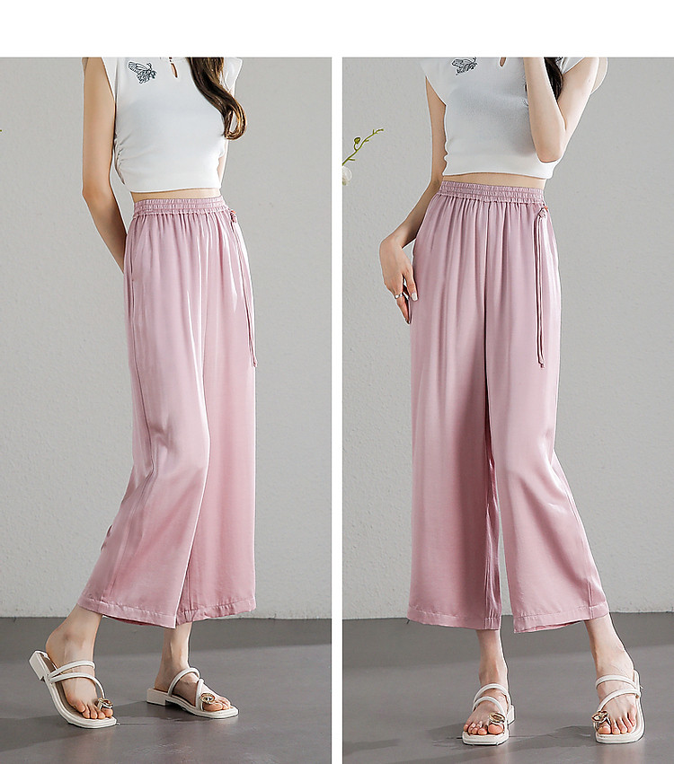 商品名称:【墨染鸦青】夏国风新中式含桑蚕丝流苏九分裤盘扣系绳休闲裤 484033
