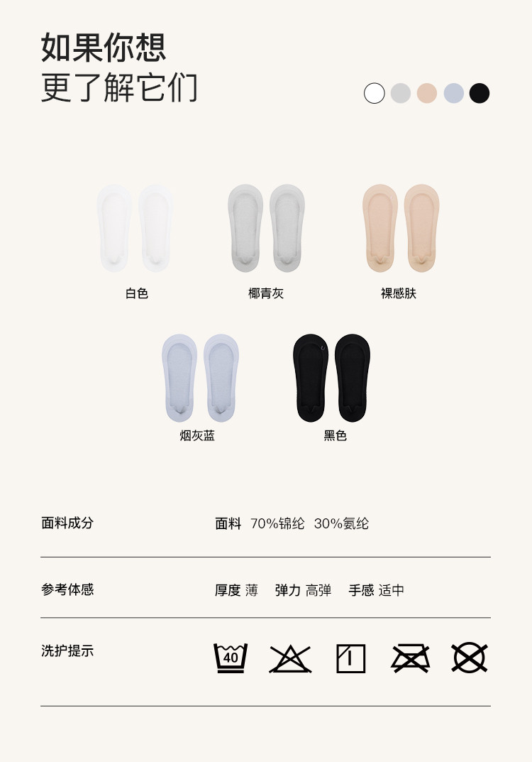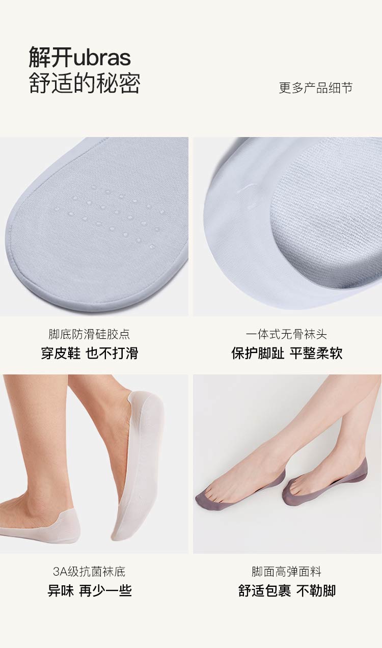 商品名称:【五双装】隐形无痕抗菌透气防滑棉底隐形舒适超浅口船袜袜子女 613504