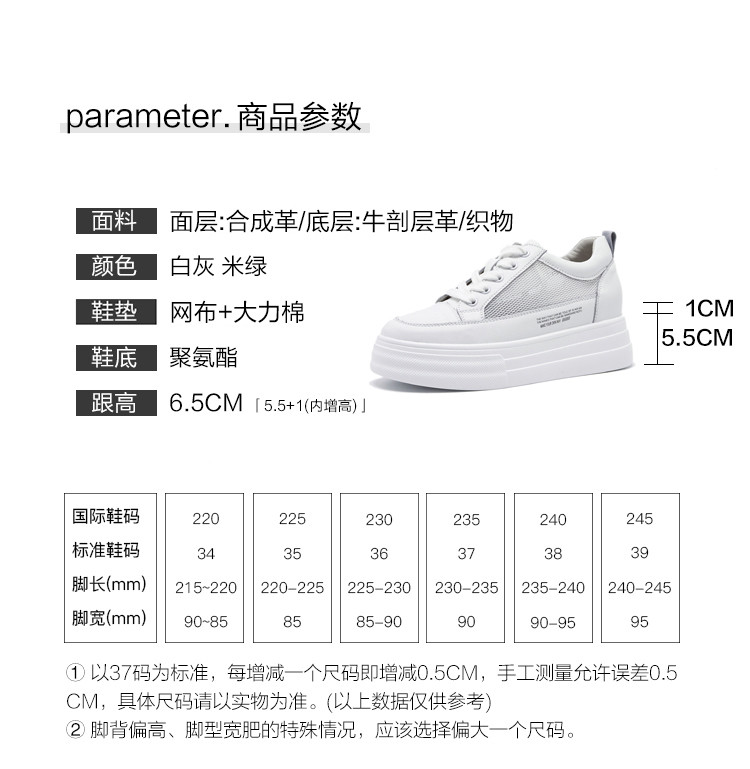 商品名称:【透气网洞】厚底增高网面鞋板鞋女休闲鞋子夏运动鞋女小白鞋女鞋 527808