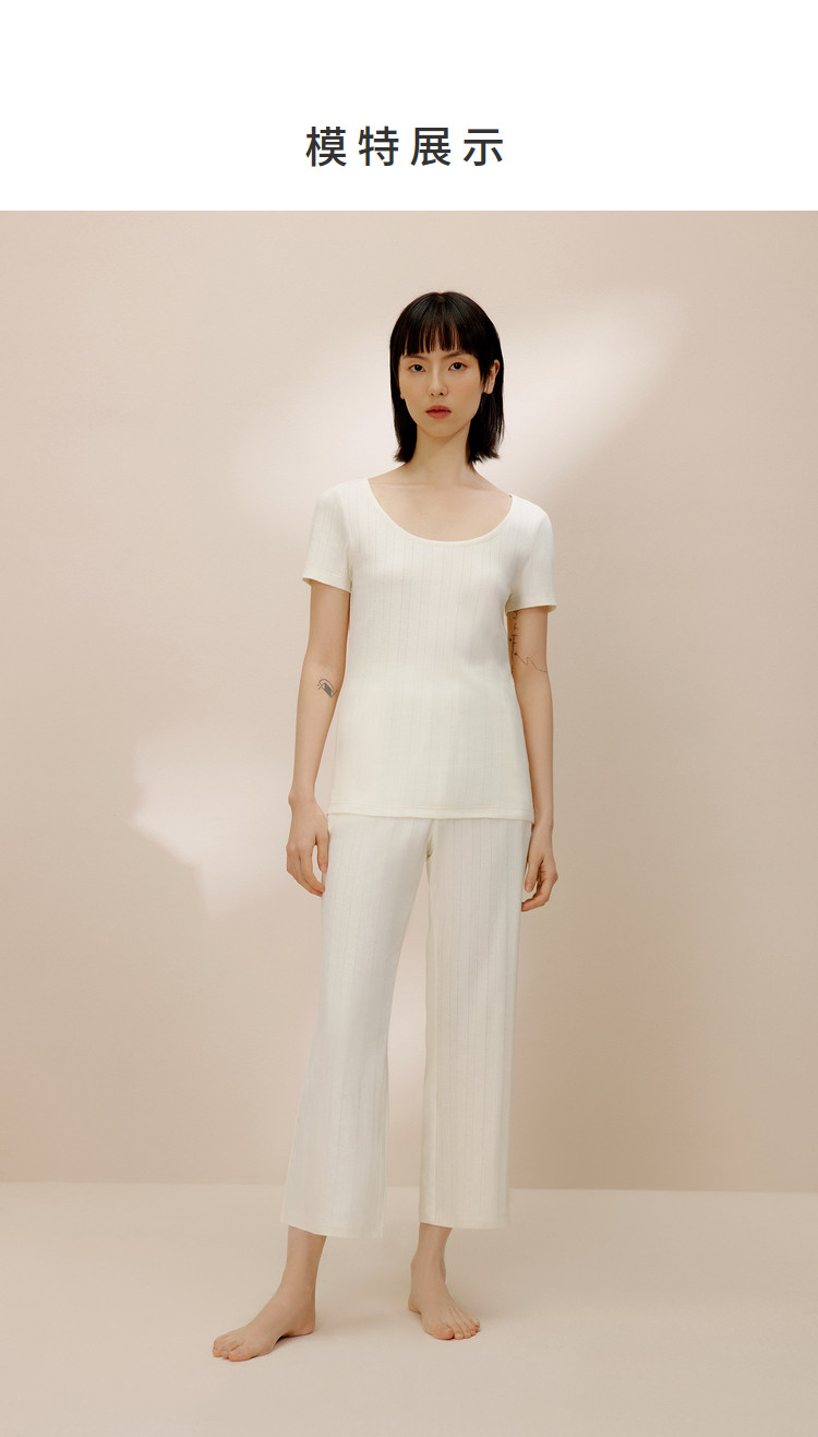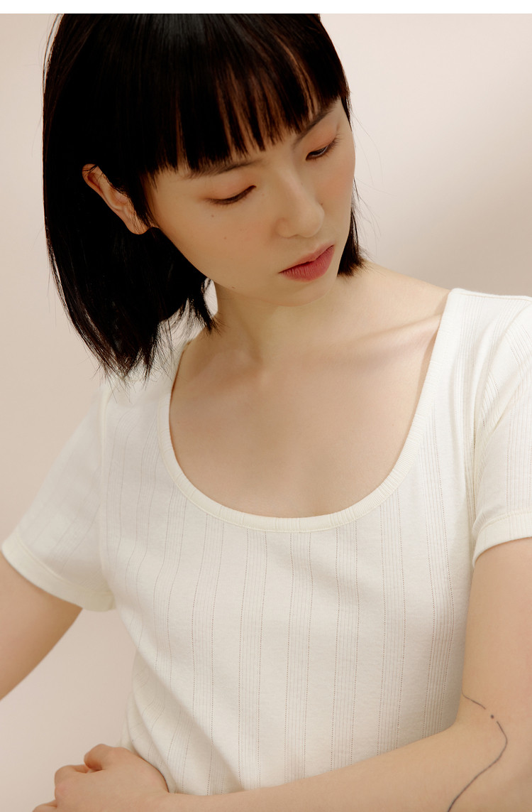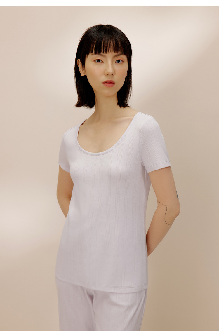 商品名称:内外少女长绒棉挑孔T恤柔软轻盈宽松自然 207626