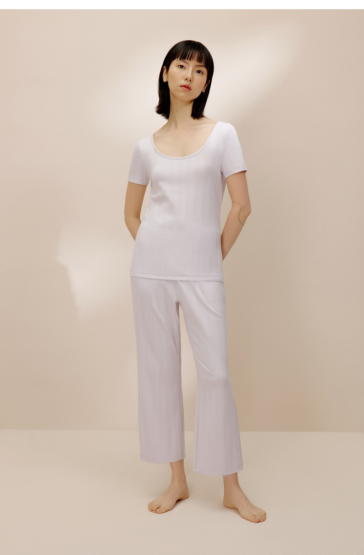 内外少女长绒棉挑孔T恤柔软轻盈宽松自然 207626